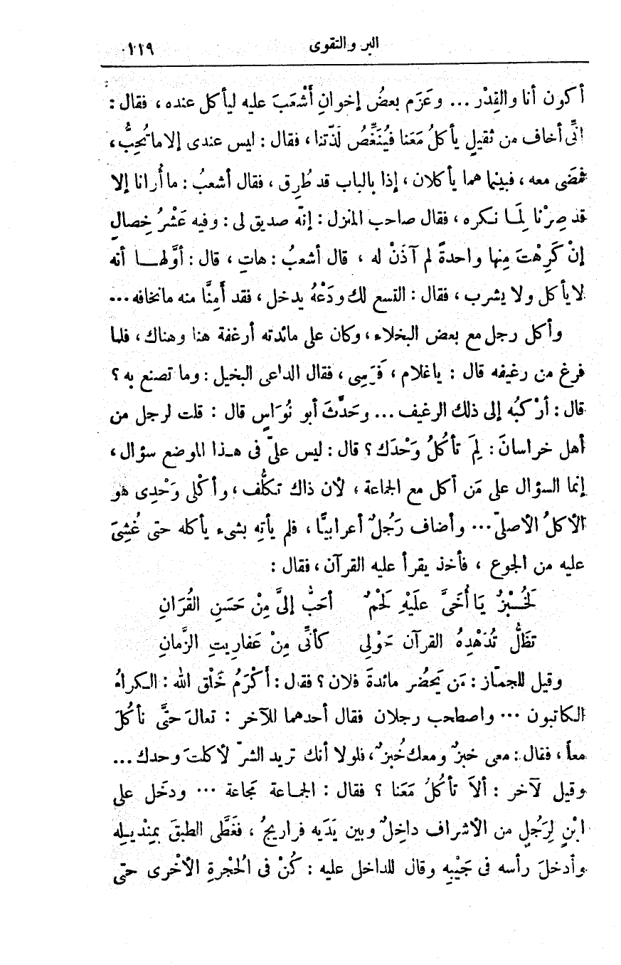 لَخُبْزٌ يَا أُخَيَّ علَيْهِ لَحْمٌ ... أحَبُّ إليَّ مِنْ حَسَنِ القُرَانِ