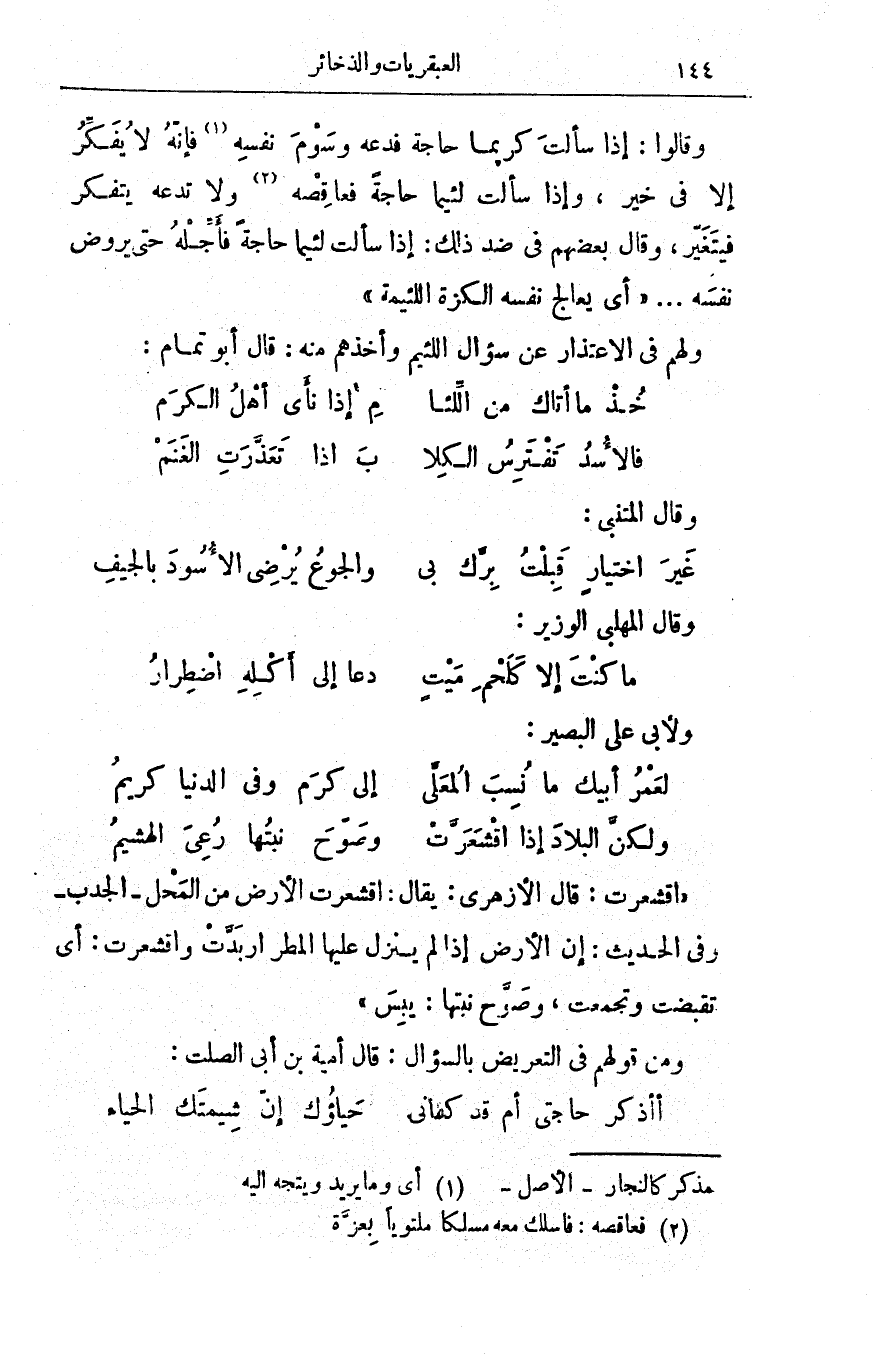 ولهم في الاعتذار عن سؤالِ اللئيم وأخذهم منه: قال أبو تمام: