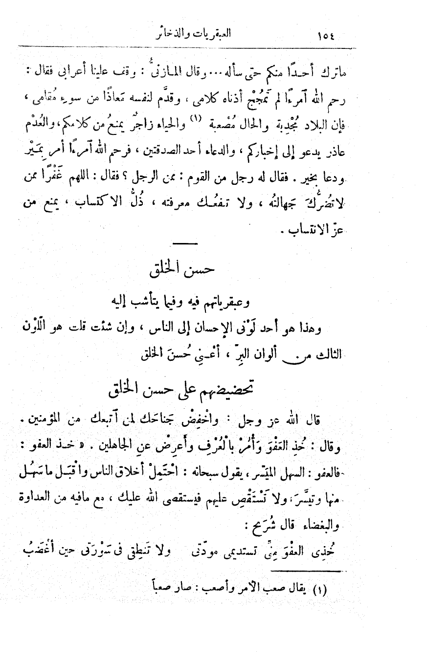 قال الله عز وجل: {وَاخْفِضْ جَنَاحَكَ لِمَنِ اتَّبَعَكَ مِنَ الْمُؤْمِنِينَ}. وقال: {خُذِ الْعَفْوَ وَأْمُرْ بِالْعُرْفِ وَأَعْرِضْ عَنِ الْجَاهِلِينَ}. {خُذِ الْعَفْوَ}: فالعفو: السهل الميسّر، يقول سبحانه: احتمل أخلاق الناس واقبل ما سَهُل منها وتيسّر، ولا تستقصِ عليهم فيستقصي الله عليك، مع ما فيه من العداوة والبغضاء قال شُرَيْح: