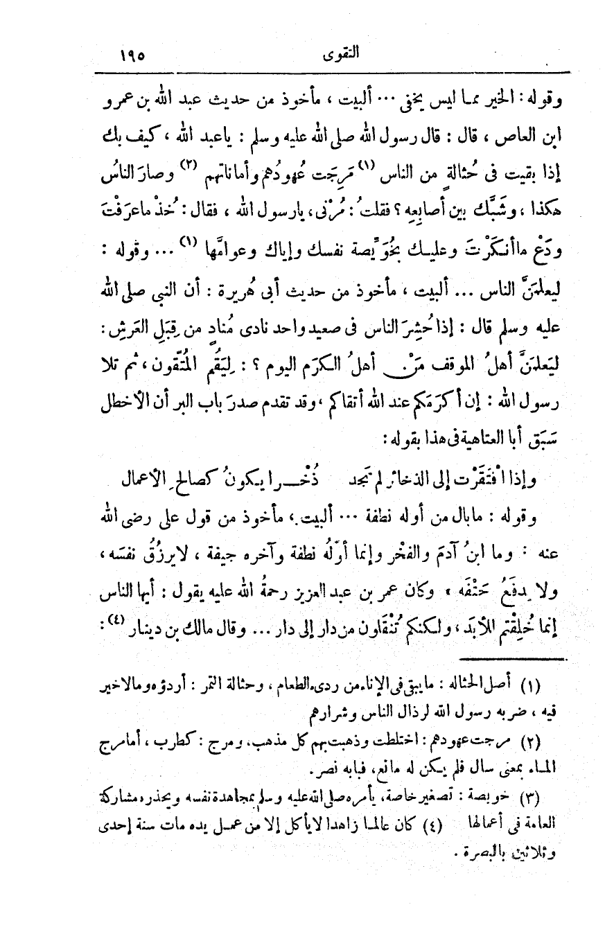 وقوله: الخير مما ليس يخفى. . . البيت، مأخوذ من حديث عبد الله بن عمرو بن العاص، قال: قال رسول الله صلى الله عليه وسلم: (يا عبدَ الله، كيف بك إذا بقيت في حُثالةٍ من الناس مَرِجَتْ عهودُهم وأماناتُهم وصار الناسُ هكذا، وشبّك بين أصابعه؟ فقلت: مُرْني، يا رسول الله، فقال: خُذْ ما عرفت ودَعْ ما أنكرتَ وعليك بخُوَيْصةِ نفسِك وإيّاك وعوامَّها). . . وقوله: ليعلمن الناس. . . البيت، مأخوذ من حديث أبي هريرة: أن النبي صلى الله عليه وسلم قال: إذا حُشر الناسُ في صعيدٍ واحدٍ نادى مُنادٍ من قبل العرش: ليعلمن أهلُ الموقفِ من أهلُ الكرم اليوم؟ ليقم المتّقون، ثم تلا رسول الله: إن أكرمكم عند الله أتقاكم، وقد تقدّم صدرَ بابِ البِرِّ أنّ الأخطل سبق أبا العتاهيةِ في هذا بقوله: