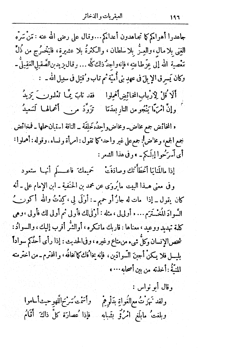 جاهدوا أهواءَكم كما تُجاهدون أعداءَكم. . . وقال علي رضي الله عنه: من سرّه الغنى بلا مالٍ، والعزُّ بلا سلطان، والكثرةُ بلا عشيرة، فليَخْرُجْ من ذلِّ معصيةِ الله إلى عزِّ طاعته، فإنه واجدٌ ذلك كله. . . وقال يزيد بن الصَّقيلِ العَقيلي - وكان يسرق الإبلَ في عهد بني أميّة ثم تاب وقُتل في سبيل الله -: