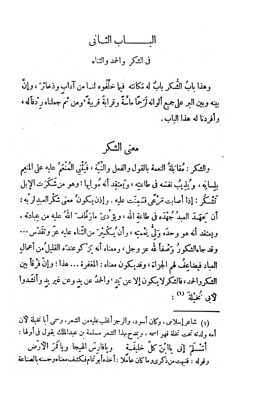 الباب الثاني في الشكر والحمد والثناء