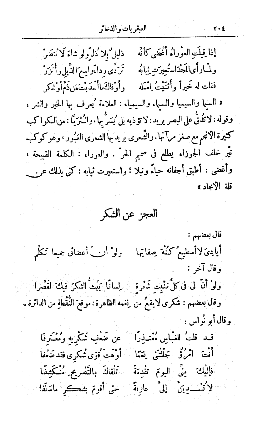 وقال بعضهم: شكري لا يقعُ من نِعَمه الظاهرة: موقعَ النُّقْطةِ من الدائرة. وقال أبو نُواس: