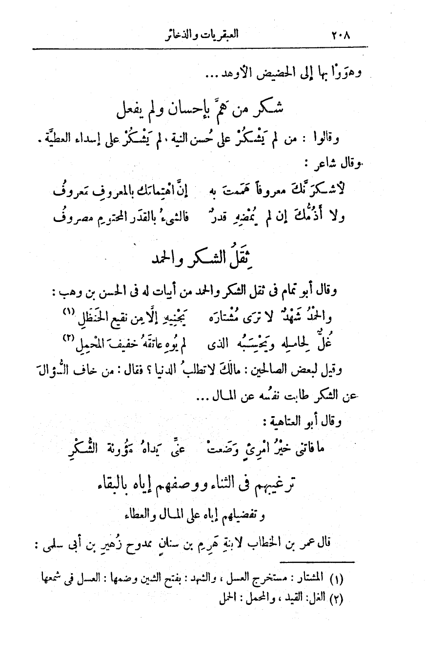 والحَمْدُ شَهْدٌ لا تَرَى مُشْتارَه ... يَجْنِيهِ إلاَّ مِن نَقيعِ الحَنظَلِ