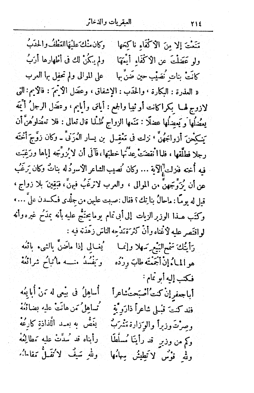 كانَتْ بناتِ نُصَيْبٍ حينَ ضَنَّ بها ... على المَوالي ولم تَحْفِلْ بها العَرَبُ