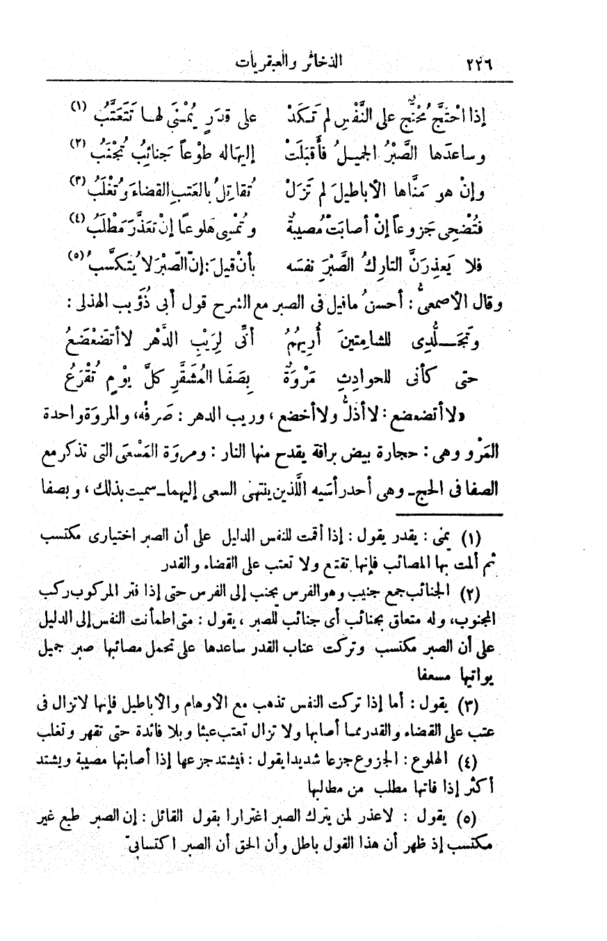 وقال الأصمعيُّ: أحسنُ ما قيل في الصَّبر مع الشرح قولُ أبي ذؤيبٍ الهُذلي: