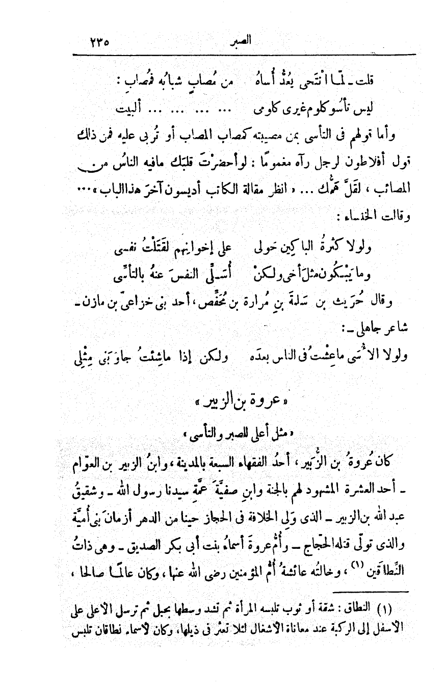 قلتُ - لمّا انْتَحى يَعُدُّ أُساهُ ... مِنْ مُصابٍ شبابُه فمُصابِ:
