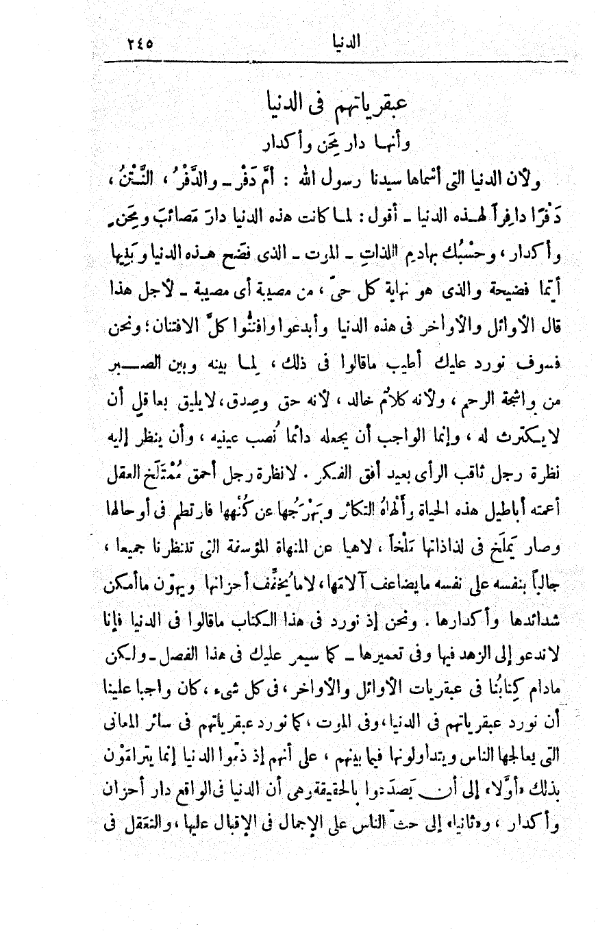 عبقريّاتهم في الدُّنيا وأنّها دارُ مِحَنٍ وأكدار