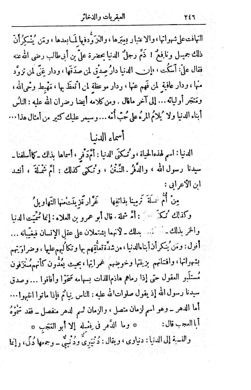 التّهافتِ على شهواتها، والاعتبار بعبرها، والتزوّد فيها لما بعدها، ومن ينكر أن ذلك جميلٌ ونافعٌ! ذمَّ رجلٌ الدُّنيا بحضرة علي بن أبي طالب رضي الله عنه فقال عليٌّ: اسكت، فإنّ الدنيا دارُ صدقٍ لمن صدَقَها، ودارُ غِنًى لمن تزوَّد منها، ودارُ عافيةٍ لمن فَهِمَ عنها، ودار موعظةٍ لمن اتّعظ بها، مَهْبِطُ وحي الله، ومَتْجَرُ أوليائه. . . إلى آخر ما قال. ومن كلامه أيضاً رضوان الله عليه: الناسُ أبناءُ الدُّنيا ولا يُلامُ المرءُ على حُبِّ أمّه. . . وسيمرّ عليك كثيرٌ من أمثال هذا. . .