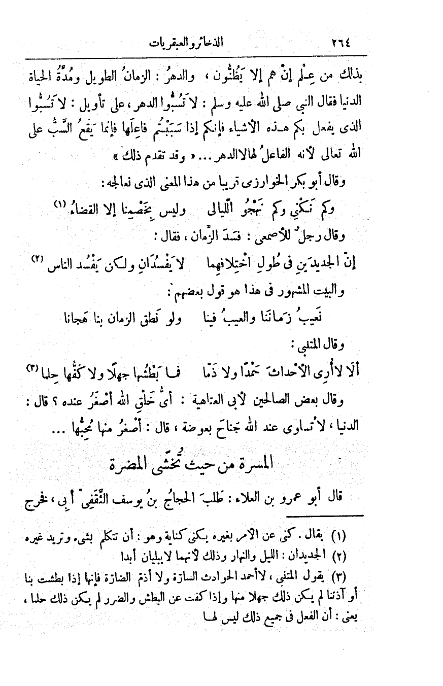 بِذَلِكَ مِنْ عِلْمٍ إِنْ هُمْ إِلَّا يَظُنُّونَ}، والدَّهر: الزمانُ الطويل ومُدَّةُ الحياةِ الدنيا فقال النبي صلى الله عليه وسلم: لا تسبّوا الدهرَ، على تأويل: لا تسبّوا الذي يفعل بكم هذه الأشياء فإنكم إذا سببتم فاعلَها فإنّما يقع السبُّ على الله تعالى لأنّه الفاعلُ لها لا الدهر. . . وقد تقدم ذلك.