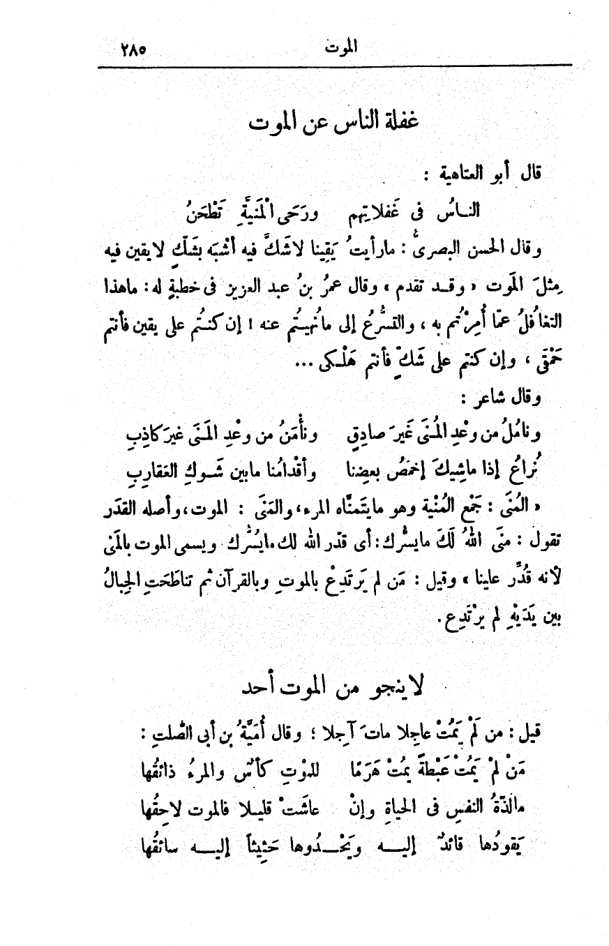 ما لَذّةُ النَّفْسِ في الحَياةِ وإنْ ... عاشَتْ قليلاً فالمَوْتُ لاحِقُها
