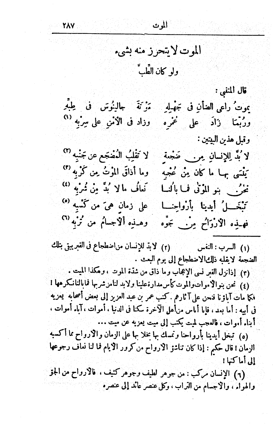الموت لا يُتحرّز منه بشيء ولو كان الطِّبَّ