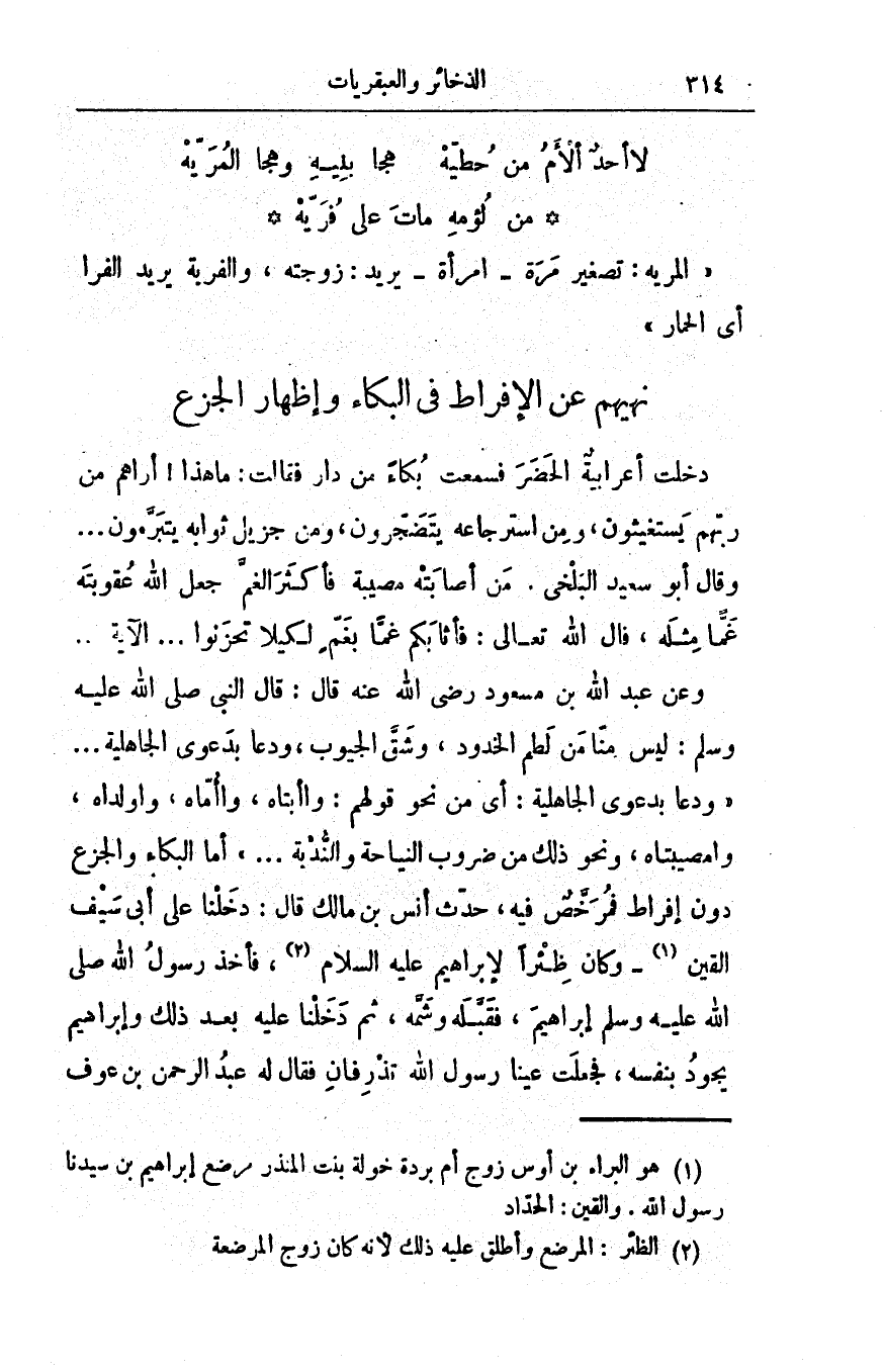 فقالوا له: ما تقولُ في عبيدِك وإمائِك؟ فقال: هُمْ عَبيدٌ قِنٌّ ما عاقبَ الليلُ النَّهارَ؛ قالوا: فأوْصِ للفقراءِ بشَيْءٍ، قال: أوصيهم بالإلحاحِ في المَسْألةِ فإنّها تجارةٌ لا تَبور، واسْتُ المَسؤول أضيقُ. قالوا: فما تقولُ في مالِك؟ قال: للأنثى مِنْ وَلدي مِثْلُ حظِّ الذكر. قالوا ليس هكذا قضى اللهُ جلَّ وعزَّ لَهُنَّ، قال: لكنّي هكذا قضيْتُ. قالوا فما توصي لليتامى؟ قال: كُلوا أموالَهم وانْكِحوا أمَّهاتِهم؛ قالوا: فهل شيءٌ تَعْهَدُ فيه غيرَ هذا؟ قال: نَعَم، تَحْمِلونَني على أتانٍ وتتركونَني راكِبَها حتى أموتَ، فإنَّ الكريمَ لا يموتُ على فراشِه، والأتانُ مَرْكَبٌ لم يَمُتْ عليه كريمٌ قطُّ، فحَمَلوه على أتانٍ وجَعلوا يذهبون به ويَجيئون عليها حتّى مات وهو يقول: