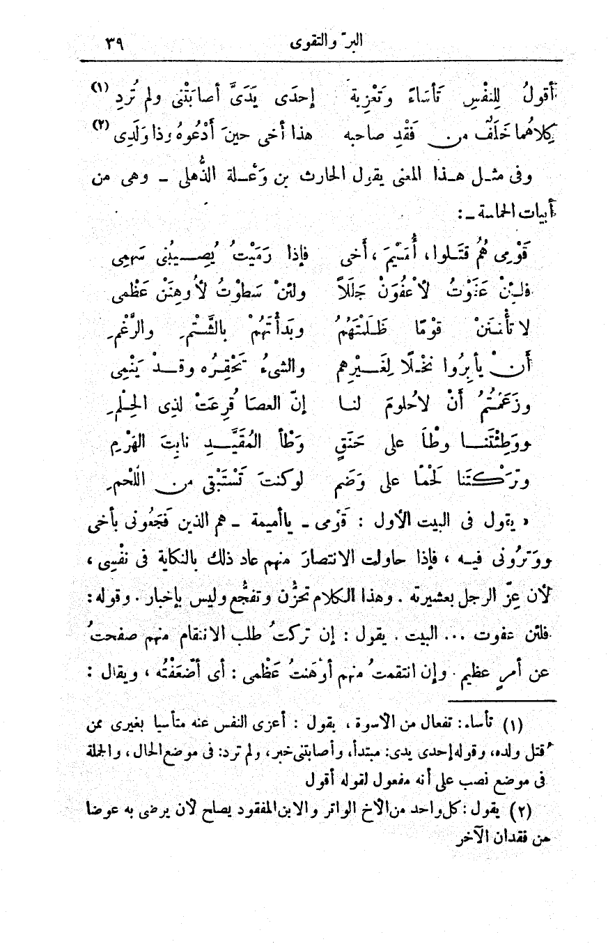 وفي مثل هذا المعنى يقول الحارث بن وعلة الذهلي - وهي من أبيات الحماسة -: