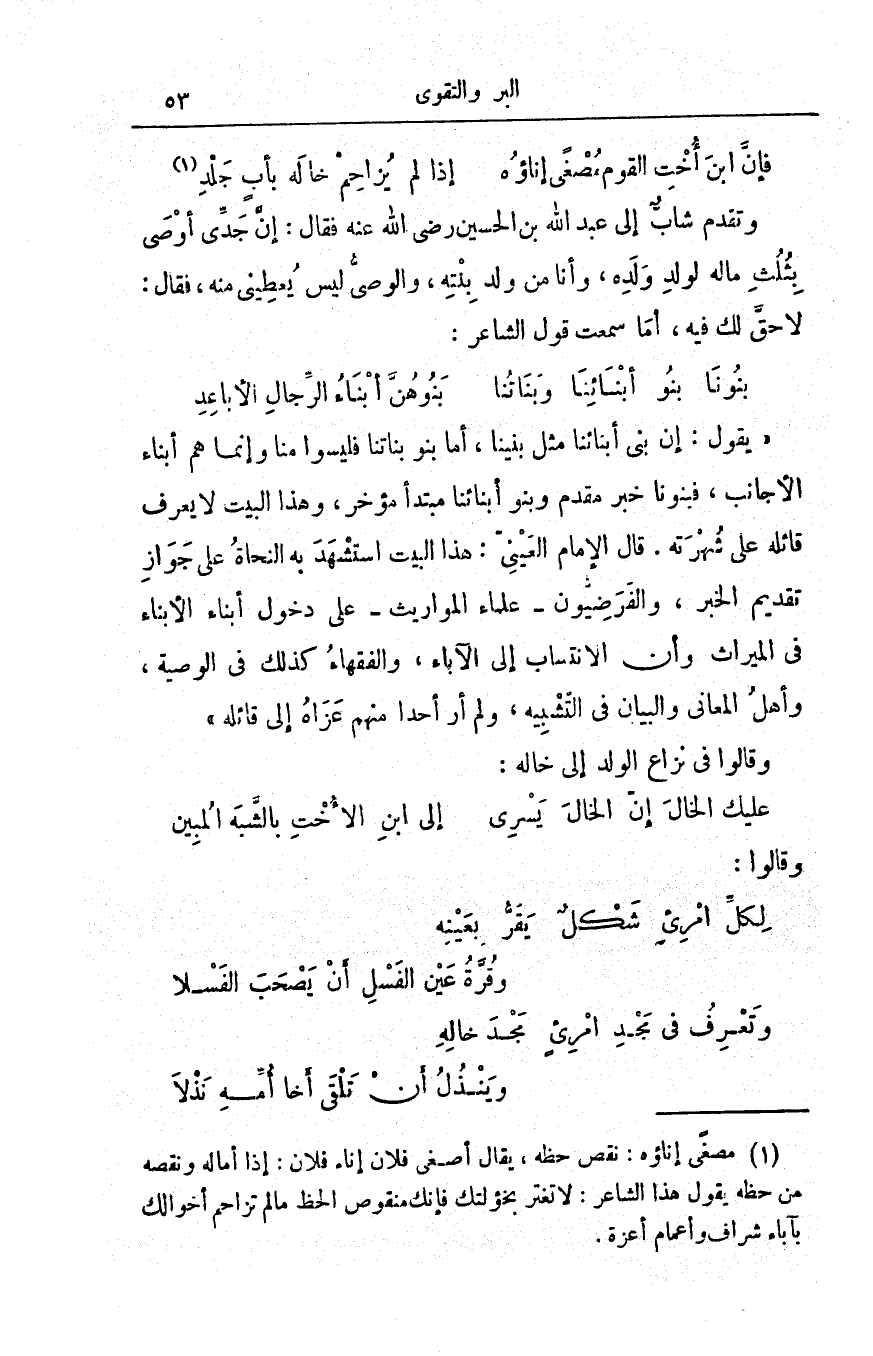 عليكَ الخالَ إنَّ الخالَ يَسْرِي ... إلى ابْنِ الأُخْتِ بالشَّبَهِ المُبِينِ