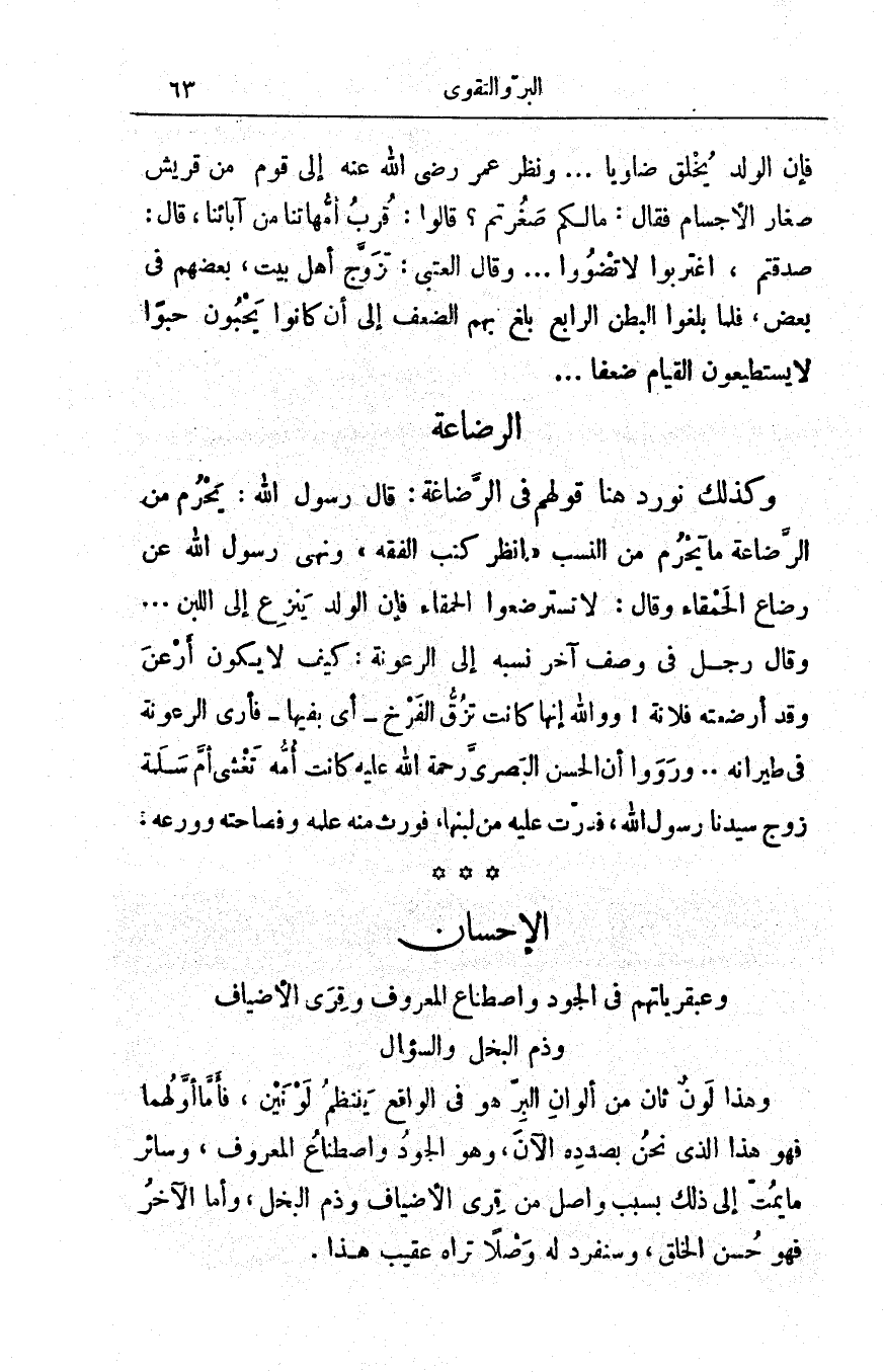 وهذا لون ثانٍ من ألوان البِرِّ هو في الواقع ينتظم لونين، فأما أولهما فهو هذا الذي نحن بصدده الآن، وهو الجود واصطناع المعروف، وسائر ما يمتّ إلى ذلك بسببٍ واصلٍ من قرى الأضياف وذمّ البخل، وأما الآخر فهو حسن الخلق، وسنفرد له وَصلاً تراه عقيب هذا.