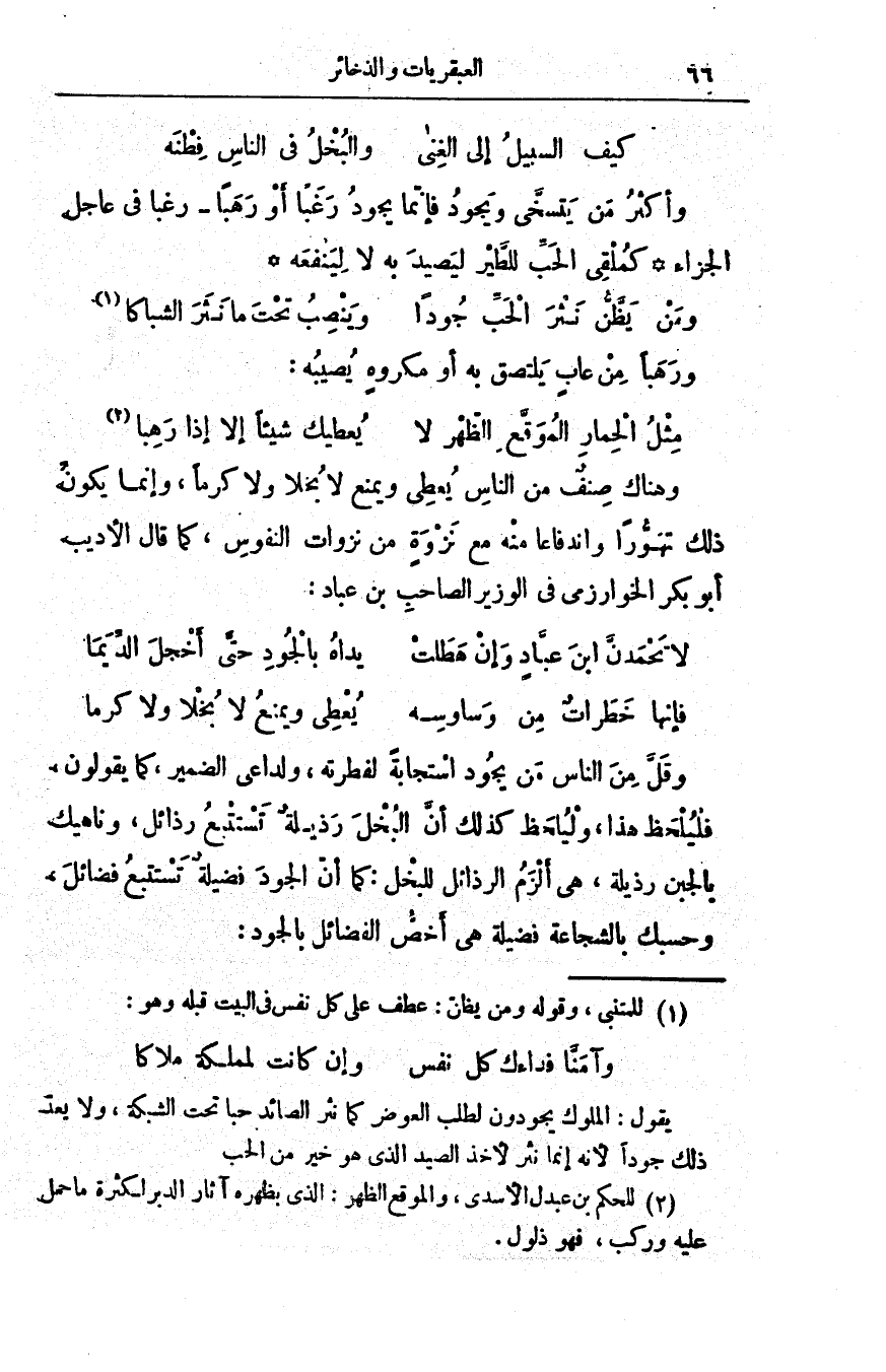 وقل من الناس من يجود استجابةً لفطرته، ولداعي الضّمير، كما يقولون: فليُلْحظ هذا، وليُلْحظ كذلك أنّ البخل رذيلةٌ تستتبع رذائل، وناهيك بالجبن رذيلةً، هي ألزم الرذائل للبخل: كما أن الجود فضيلةٌ تستتبع فضائلَ، وحسبك بالشجاعة فضيلةً هي أخص الفضائل بالجود: