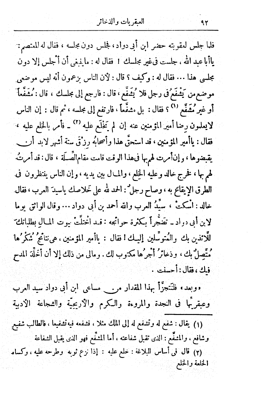 وبعد فلْنتجزأ بهذا المقدار من مساعي ابن أبي دُواد سيّد العرب وعبقريِّها في النجدة والمروءة والكرم والأريحية والشجاعة الأدبيّة