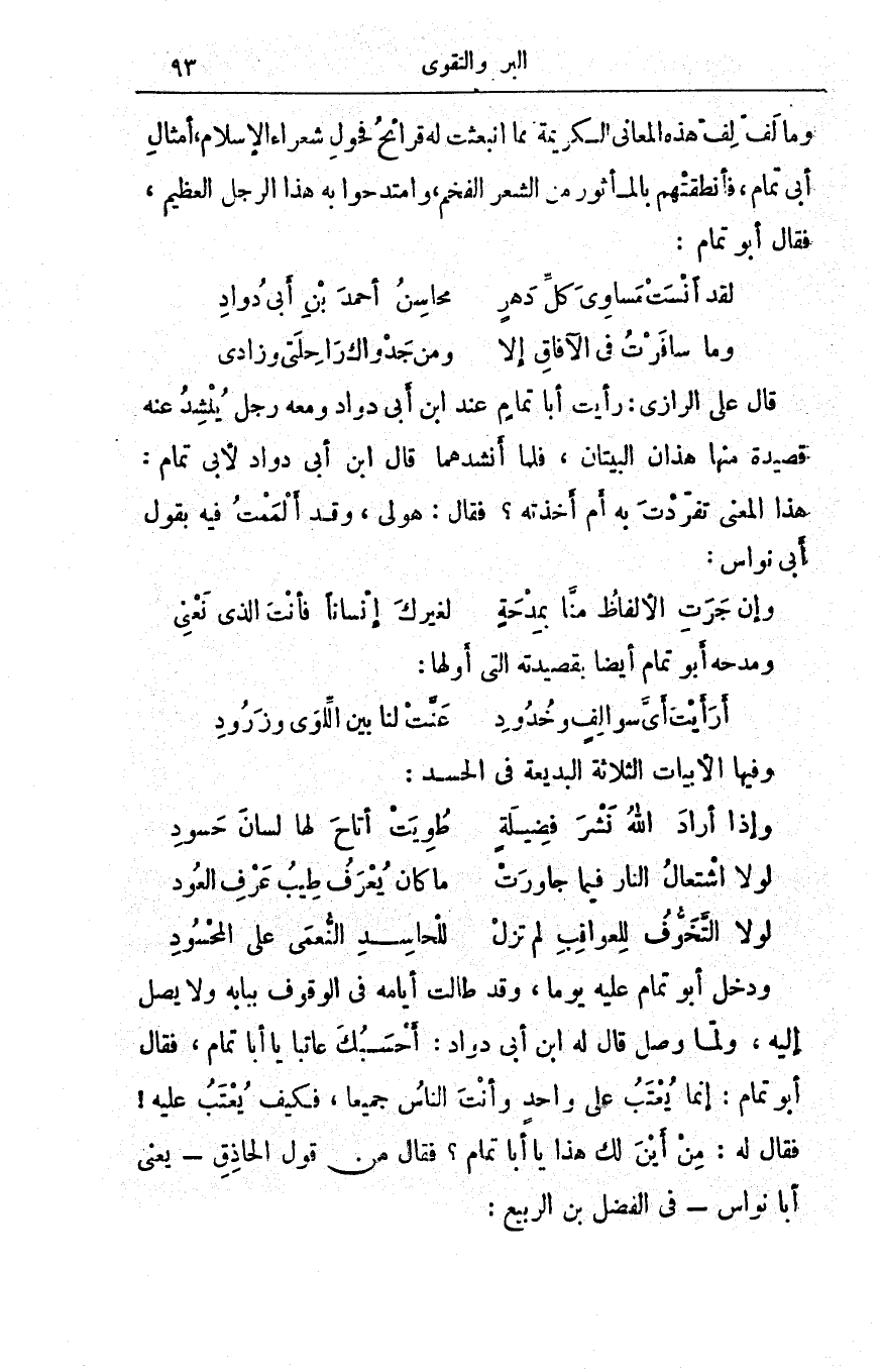 وما لَفّ لِفّ هذه المعاني الكريمة مما انبعثت له قرائح فحول شعراء الإسلام، أمثال أبي تمام، فأنطقتهم بالمأثورِ من الشعر الفخم، وامتدحوا به هذا الرجل العظيم، فقال أبو تمام: