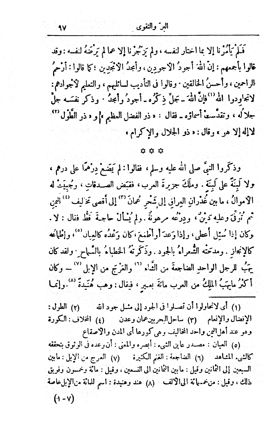 فلم يأمرنا إلا بما اختار لنفسِه، ولم يزجُرْنا إلا عمّا لم يرضَه لنفسه: وقد قالوا بأجمعهم: إنَّ الله أجودُ الأجودين، وأمجد الأمجدين؛ كما قالوا: أرحم الراحمين، وأحسن الخالقين. وقالوا في التأديب لسائليهم، والتعليمِ لأجوادِهم: لا تُجاوِدوا اللهَ فإنَّ الله - جلَّ ذكرُه - أجودُ وأمجدُ. وذكر نفسه جلَّ جلالُه، وتقدّست أسماؤه - فقال: {ذُو الْفَضْلِ الْعَظِيمِ} و {ذِي الطَّوْلِ لَا إِلَهَ إِلَّا هُوَ} وقال: {ذُو الْجَلَالِ وَالْإِكْرَامِ}.