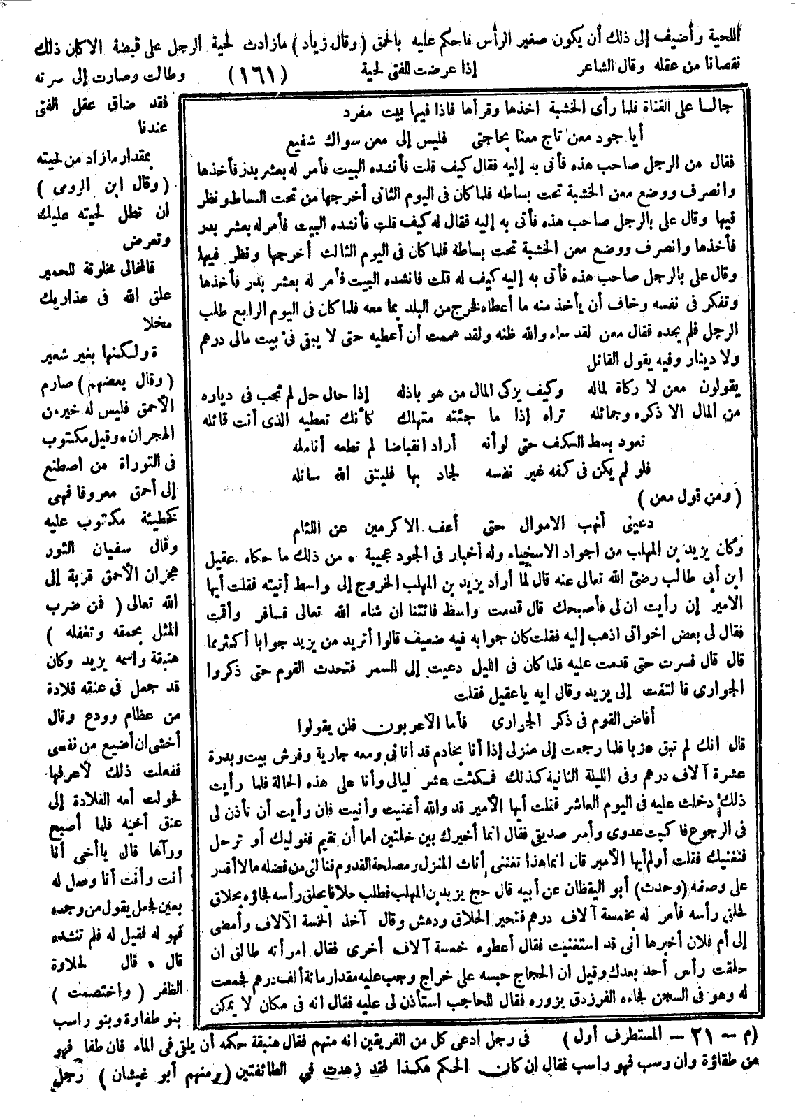 اللحية وأضيف إلى ذلك أن يكون صغير الرأس فأحكم عليه بالحمق. وقال زياد ما زادت لحية الرجل على قبضة إلا كان نقصانا من عقله وقال الشاعر: