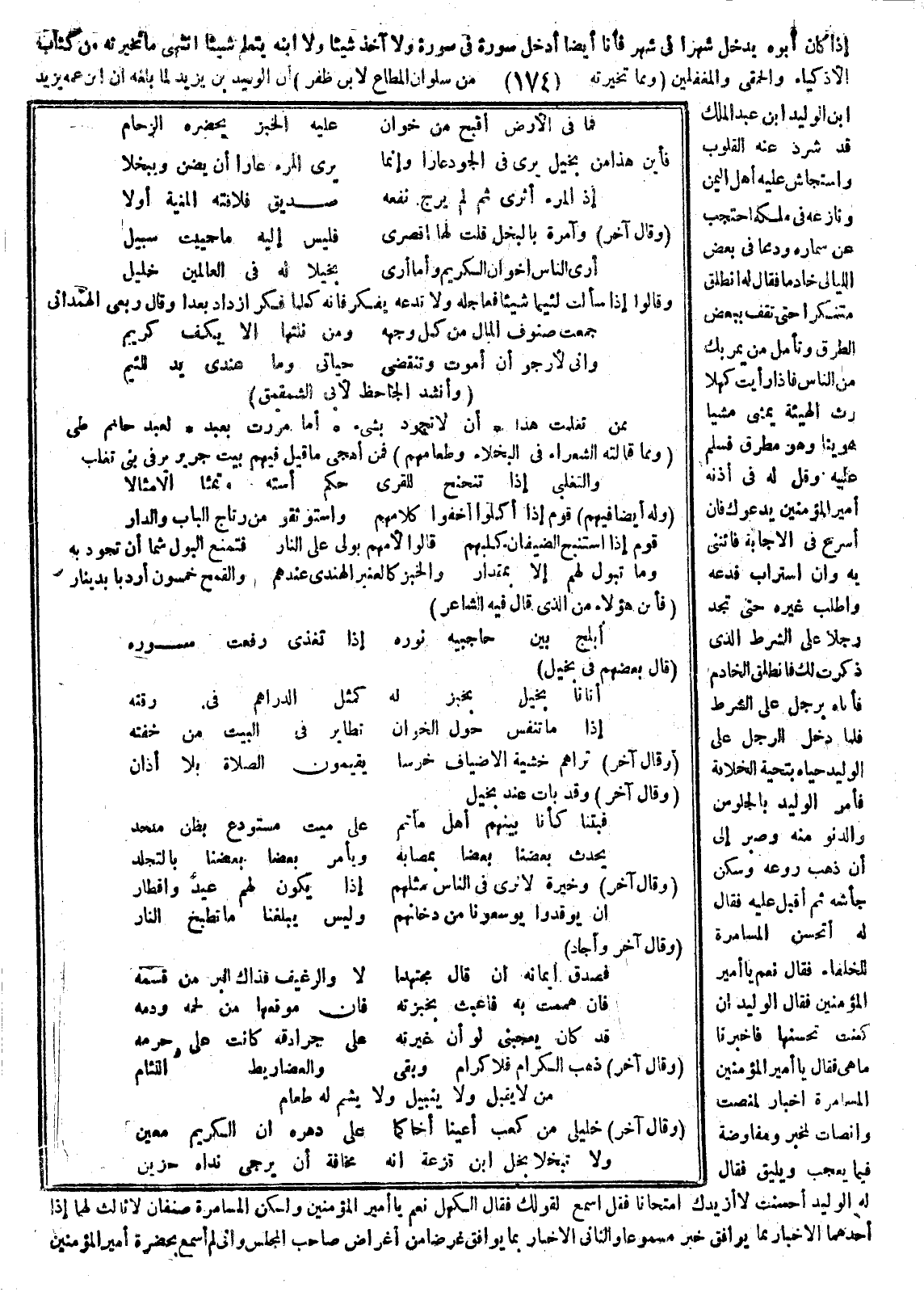ومما تخيرته من سلوان المطاع لابن ظفر أن الوليد ابن يزيد لما بلغه أن ابن عمه يزيد ابن الوليد بن عبد الملك قد شرد عنه القلوب واستجاش عليه أهل اليمن ونازعه في ملكه احتجب عن سمّاره ودعا في بعض الليالي خادما فقال له انطلق متنكرا حتى تقف ببعض الطرق وتأمل من يمر بك من الناس فإذا رأيت كهلا رث الهيئة يمشي مشياً هويناً وهو مطرق فسلّم عليه وقل له في أذنه: أمير المؤمنين يدعوك فأن أسرع في الإجابتة فائتني به وإن استراب فدعه واطلب غيره حتى تجد رجلا على الشرط الذي ذكرت لك فانطلق الخادم فأتاه برجل على الشرط فلما دخل الرجل على الوليد حياه بتحية الخلافة فأمره الوليد بالجلوس والدنو منه وصبر إلى أن ذهب روعه وسكن جأشه ثم اقبل عليه فقال له أتحسن المسامرة للخلفاء فقال نعم يا أمير المؤمنين فقال الوليد إن كنت تحسنها فأخبرنا ما هي فقال يا أمير المؤمنين المسامرة أخبار لمنصت وأنصات لمخبر ومفاوضة فيما يعجب ويليق فقال له الوليد أحسنت لا أزيدك امتحانا فقل أسمع لقولك فقال الكهل نعم يا أمير المؤنين ولكن المسامرة صنفان لا ثالث لهما أحدهما الإخبار بما يوافق خبرا مسموعا والثاني الإخبار بما يوافق غرضاً من أغراض صاحب المجلس وإني لم أسمع بحضرة أمير المؤمنين