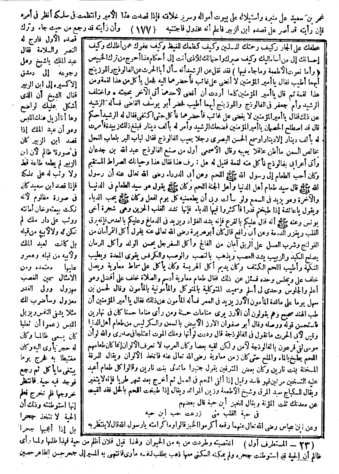 الزبير فأعلم أنه مخذول فأجنبه وإن رأيته قد رجع من حيث جاء وترك قصده الأول فأرج له النصر والسلامة. فقال عبد الملك يا شيخ وهل رجوعه إلى دمشق إلا كمسيره إلى ابن الزبير فقال الشيخ إن الذي أشكل عليك لواضح وها أنا أزيل عنك اللبس وهو أن عبد الملك إذا قصد ابن الزبير كان في صورة ظالم لأن ابن الزبير لم يطعه طاعة قط ولا وثب له على ملكة فإذا قصد ابن سعيد كان في صورة مظلوم لأنه نكث بيعته وخان أمانته ووثب على دار ملك لم تكن له ولا لأبيه من قبله بل كانت لعبد الملك ولأبيه من قبله وعمرو عليها متعد، ومن الأمثال سمين الغضب مهزول وولي الغدر معزول وسأضرب لك مثلا يشفي النفس ويزيل اللبس. زعموا أن ثعلبا كان يسمّى ظالما وكان له جحر يأوي إليه وكان مغتبطاً به فخرج يوما يبتغي ما يأكل ثم رجل فوجد فيه حية فانتظر خروجها فلم تخرج فعلم أنها استوطنته وذلك أن الحية لا تتخذ جحراً بل إذا أعجبها جحر اغتصبته وطردت من به من الحيوان ولهذا قيل فلان أظلم من حية فهذا ظلمها ولما رأى ظالم أن الحية قد استوطنت جحره ولم يمكنه السكنى معها ذهب يطلب لنفسه مأوى فانتهى به السير إلى جحر حسن الظاهر