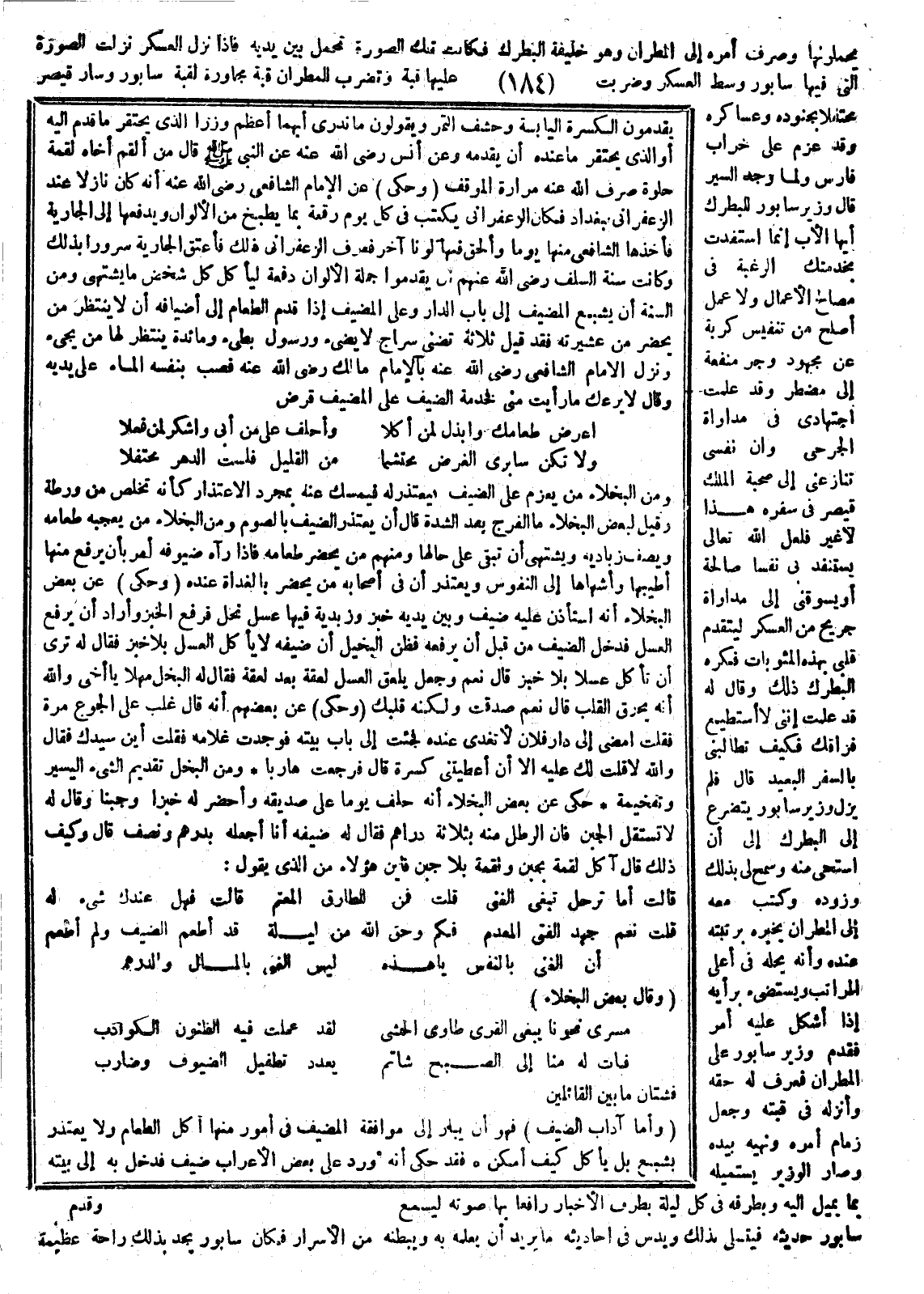 الأب إنما استفدت بخدمتك الرغبة في مصالح الأعمال ولا عمل أصلح من تنفيس كربة عن مجهود وجر منفعة إلى مضطر وقد علمت اجتهادي في مداواة الجرحى وإن نفسي تنازعني إلى صحبة الملك قيصر في سفره هذا لا غير فلعل الله تعالى يستنقذ بي نفسا صالحة أو يشوقني إلى مداواة جريح من العسكر ليتقدم قلبي بهذه المثوبات، فكره البطرك ذلك وقال له قد علمت أنني لا أستطيع فراقك فكيف تطالبني بالسفر البعيد قال فلم يزل وزير سابور يتضرع إلى البطرك إلى أن استحى منه وسمح له بذلك وزوده وكتب معه إلى المطران يخبره برتبته عنده وأن يحله في أعلى المراتب ويستضيء برأيه إذا أشكل عليه أمر فقدم وزير سابور على المطران فعرف له حقه وأنزله في قبته وجعل زمام أمره ونهيه بيده وصار الوزير يستميله بما يميل إليه ويطرفه في كل ليلة بطرف الأخبار رافعا بها صوته ليسمع سابور حديثه فيتسلى بذلك ويدس في أحاديثه ما يريد أن يعلمه به ويبطنه من الأسرار فكان سابور يجد بذلك راحة عظيمة