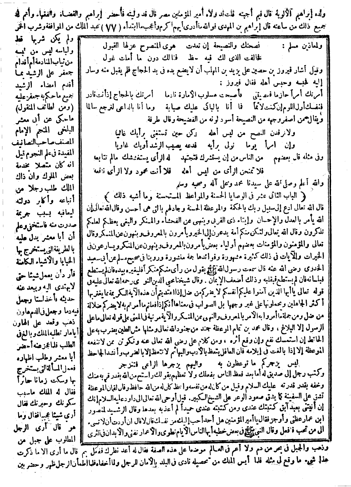 ولده إبراهيم الألوية قال فبم أجبته قلت قد ولاه أمير المؤمنين مصر قال قد وليته فأحضر إبراهيم والقضاة والفقهاء وأتم له جميع ذلك من ساعته قال إبراهيم بن المهدي فوالله ما أدري أيهم أكرم وأعجب، ما ابتدأه عبد الملك من الموافقة وشرب الخمر ولم يكن شربها قط ولباسه ما ليس من لبسه من ثياب المنادمة أم إقدام جعفر على الرشيد بما أقدم أم إمضاء الرشيد جميع ما حكم به جعفر عليه.