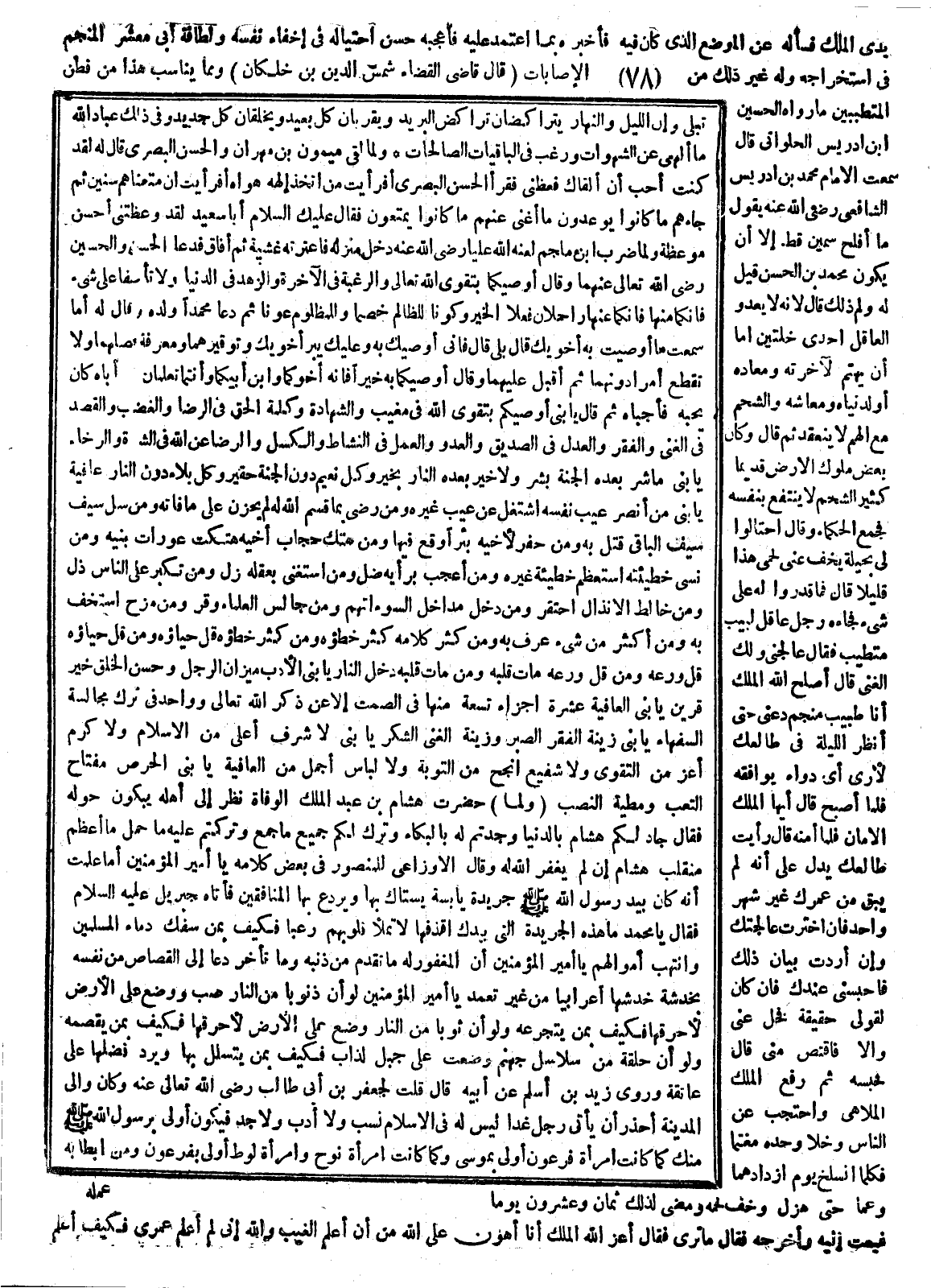 يدي الملك فسأله عن الموضع الذي كان فيه فأخبره بما اعتمد عليه فأعجبه حسن احتياله في إخفاء نفسه ولطافة أبي معشر المنجم في استخراجه وله غير ذلك من الإصابات. قال قاضي القضاة شمس الدين بن خلكان ومما يناسب هذا من فطن المتطببين ما رواه الحسين بن إدريس الحلواني قال سمعت الإمام محمد بن إدريس الشافعي رضي الله عنه يقول ما أفلح سمين قط إلا أن يكون محمد بن الحسن قيل له ولم ذلك قال لأنه لا يعدو العاقل إحدى خلتين إما أن يهتم لآخرته ومعاده أو لدنياه ومعاشه والشحم مع الهم لا ينعقد ثم قال وكان بعض ملوك الأرض قديما كثير الشحم لا ينتفع بنفسه فجمع الحكماء وقال احتالوا لي بحيلة يخف عني لحمي هذا قليلا قال فما قدروا له على شيء فجاءه رجل عاقل لبيب متطبب فقال عالجني ولك الغنى قال أصلح الله الملك أنا طبيب منجم دعني حتى أنظر الليلة في طالعك لأرى أي دواء يوافقه فلما أصبح قال أيها الملك الأمان فلما أمنه قال رأيت طالعك يدل على أنه لم يبق من عمرك غير شهر واحد فإن اخترت عالجتك وإن أردت بيان ذلك فاحبسني عندك فإن كان لقولي حقيقة فخل عني وإلا فاقتص مني قال فحبسه ثم رفع الملك الملاهي واحتجب عن الناس وخلا وحده مغتما فكلما انسلخ يوم ازداد هما وغما حتى هزل وخف لحمه ومضى لذلك ثمان وعشرون يوما فبعث إليه وأخرجه فقال ما ترى فقال أعز الله الملك أنا أهون على الله من أن أعلم الغيب والله إني لم أعلم عمري فكيف أعلم