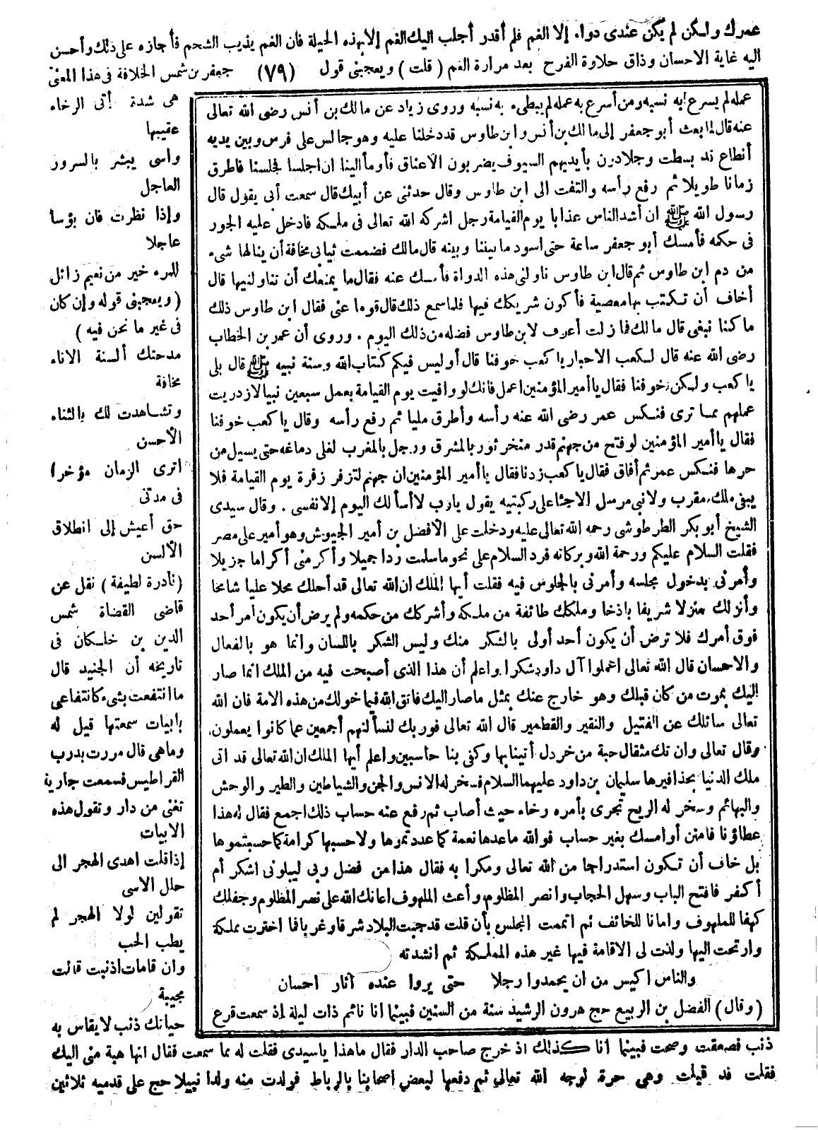 نادرة لطيفة نقل عن قاضي القضاة شمس الدين بن خلكان في تاريخه أن الجنيد قال ما انتفعت بشيء كانتفاعي بأبيات سمعتها قيل له وما هي قال مررت بدرب القراطيس فسمعت جارية تغني من دار وتقول هذه الأبيات:
