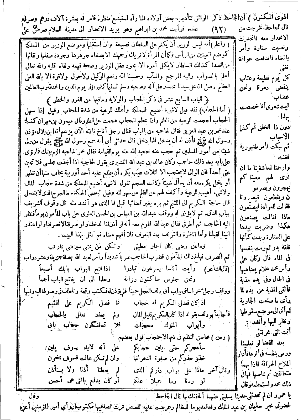 ورمى بنفسه في أثرها فأدار الملاح الحراقة فإذا بهما متعانقين ثم غاصا فهال ذلك محمداً واستعظمه وقال يا عمرو إن لم تحدثني حديثا يسليني عنهما ألحقتك بهما قال الجاحظ فحضرني خبر سليمان بن عبد الملك وقد قعد يوما للمظالم وعرضت عليه القصص فمرت قصة فيها مكتوب إن رأى أمير المؤمنين أعزه