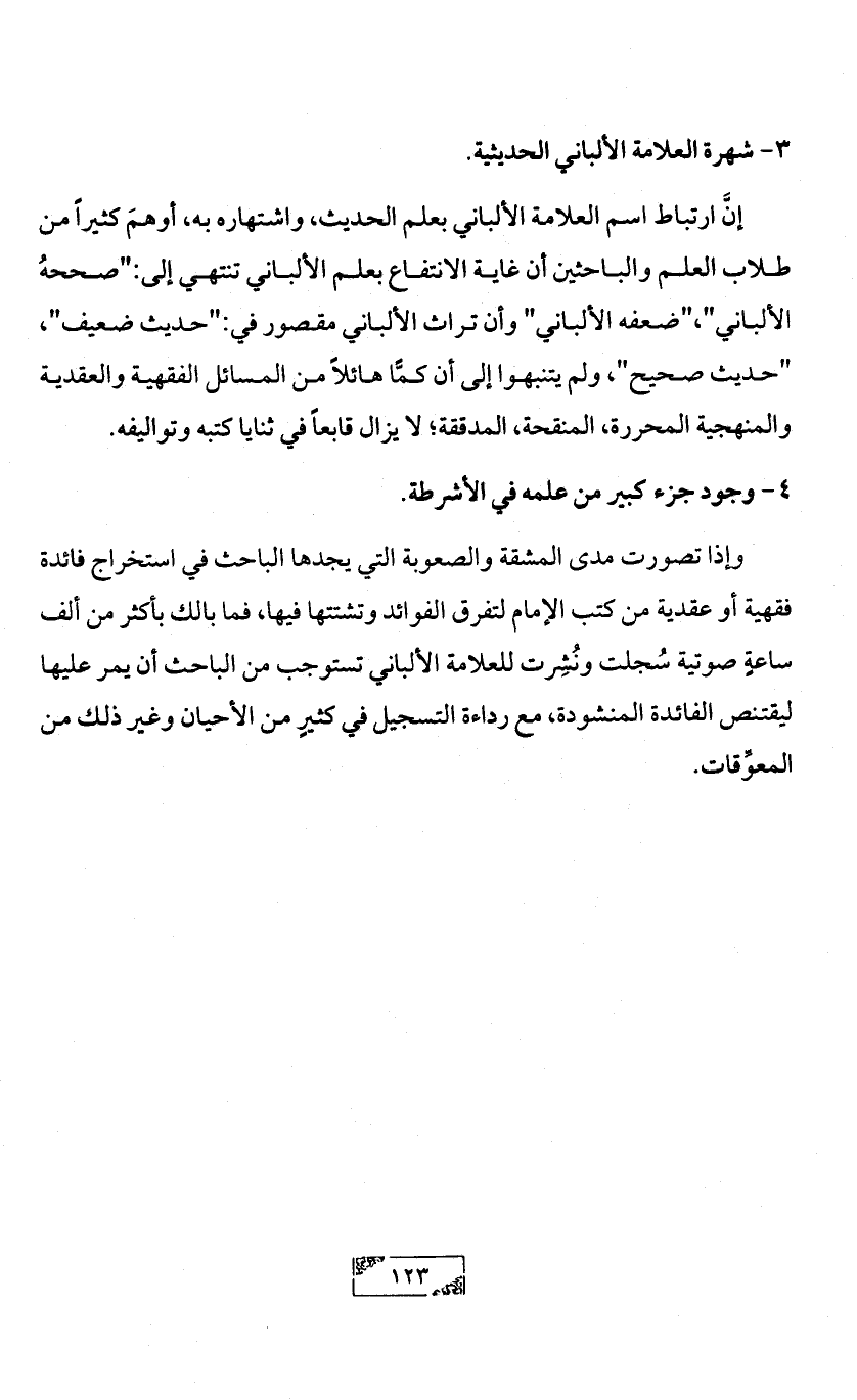 وإذا تصورت مدى المشقة والصعوبة التي يجدها الباحث في استخراج فائدة فقهية أو عقدية من كتب الإمام لتفرق الفوائد وتشتتها فيها، فما بالك بأكثر من ألف ساعةٍ صوتية سُجلت ونُشِرت للعلامة الألباني تستوجب من الباحث أن يمر عليها ليقتنص الفائدة المنشودة، مع رداءة التسجيل في كثيرٍ من الأحيان وغير ذلك من المعوِّقات.