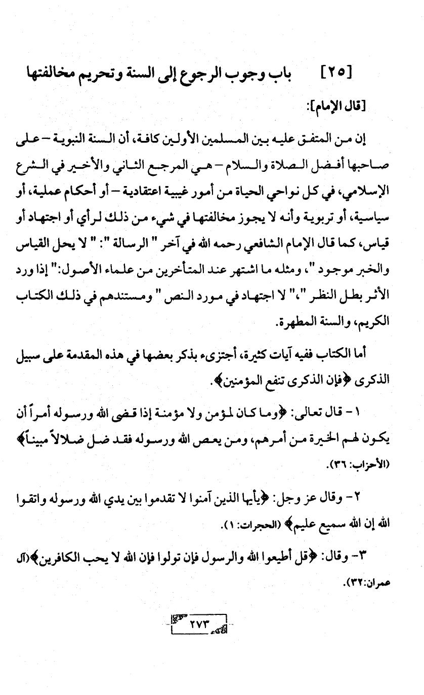 [25] باب وجوب الرجوع إلى السنة وتحريم مخالفتها