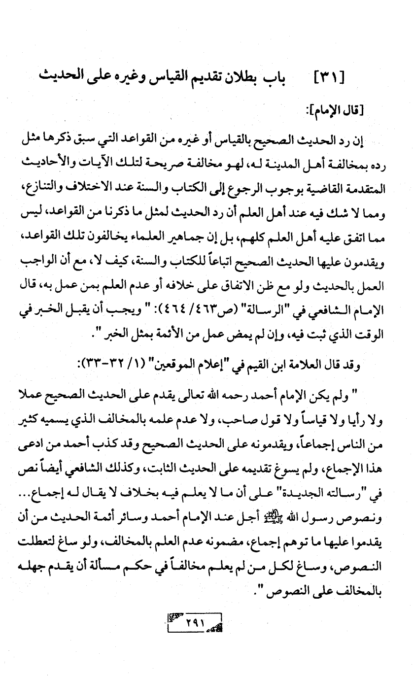 [31] باب بطلان تقديم القياس وغيره على الحديث