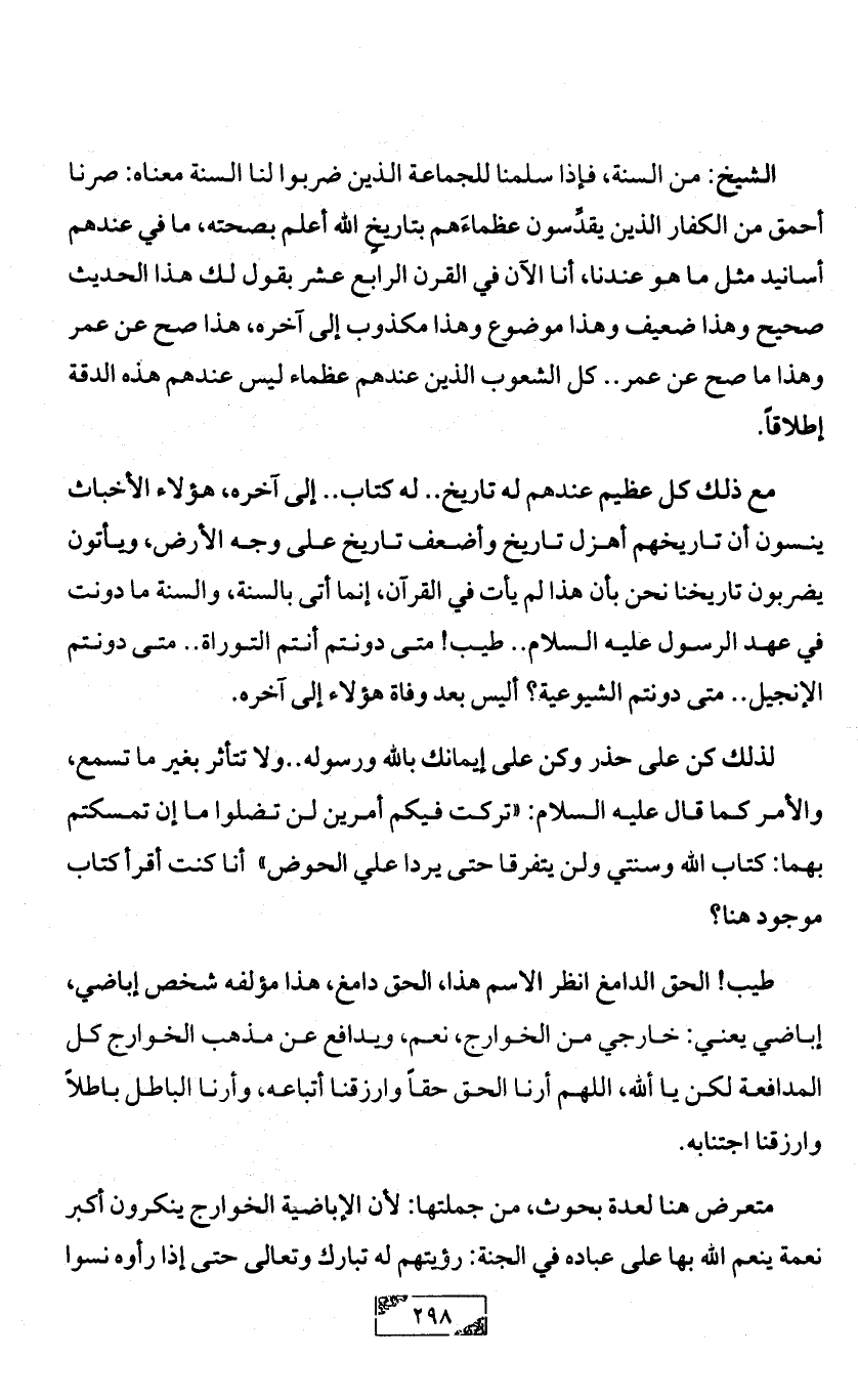 طيب! الحق الدامغ انظر الاسم هذا، الحق دامغ، هذا مؤلفه شخص إباضي، إباضي يعني: خارجي من الخوارج، نعم، ويدافع عن مذهب الخوارج كل المدافعة لكن يا ألله، اللهم أرنا الحق حقاً وارزقنا أتباعه، وأرنا الباطل باطلاً وارزقنا اجتنابه.