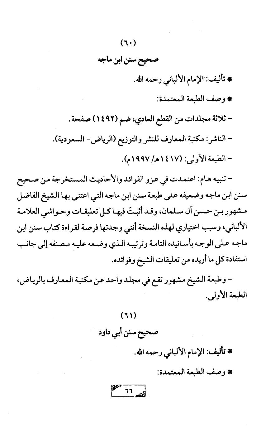- وطبعة الشيخ مشهور تقع في مجلد واحد عن مكتبة المعارف بالرياض، الطبعة الأولى.