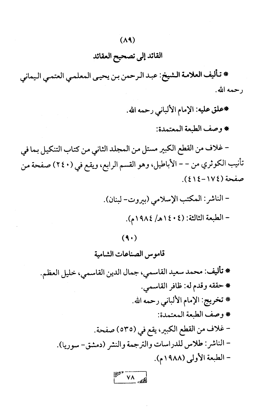* تأليف العلامة الشيخ: عبد الرحمن بن يحيى المعلمي العتمي اليماني رحمه الله.