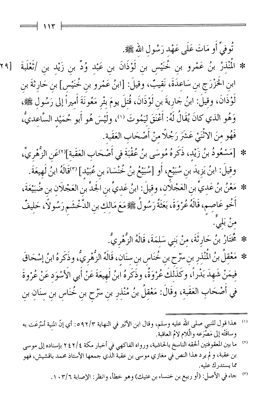 (¬3) جاء في الأصل: (أو ربيع بن خنساء بن عتيك) وهو خطأ، وانظر: الإصابة 6/ 103.