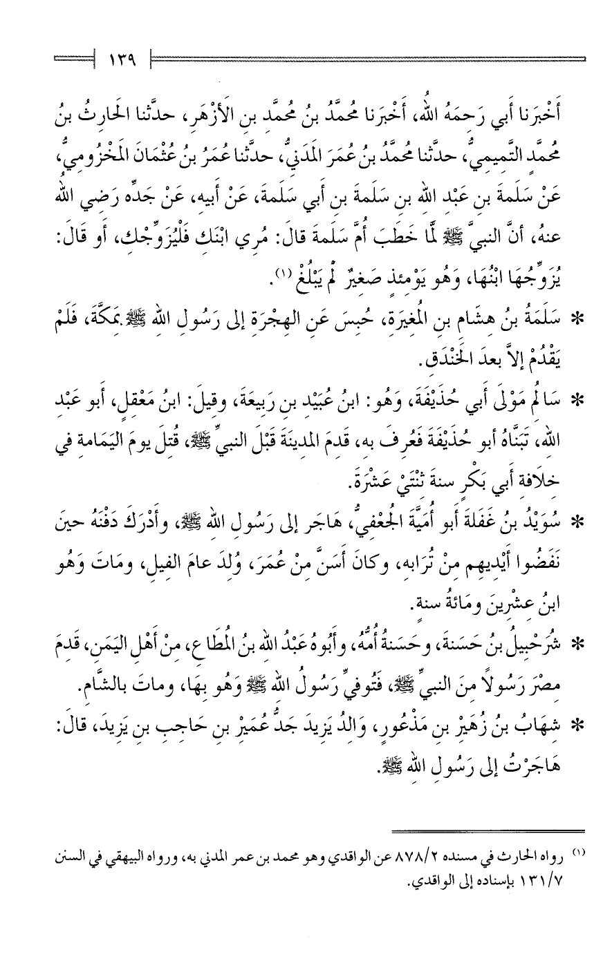 (¬1) رواه الحارث في مسنده 2/ 878 عن الواقدي وهو مُحمَّد بن عمر المدني به، ورواه البيهقي في السنن 7/ 131 بإسناده إلى الواقدي.