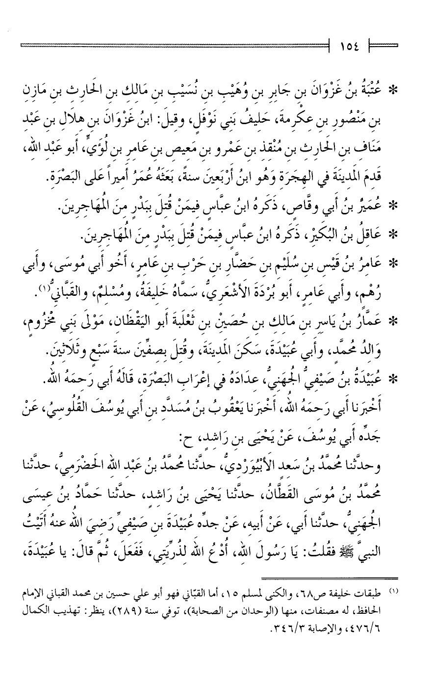 (¬1) طبقات خليفة ص 68، والكنى لمسلم 15، أما القبّاني فهو أبو على حسين بن محمَّد القباني الإِمام الحافظ، له مصنفات، منها (الوحدان من الصحابة)، توفي سنة (289)، ينظر: تهذيب الكمال 6/ 476، والإصابة 3/ 346.