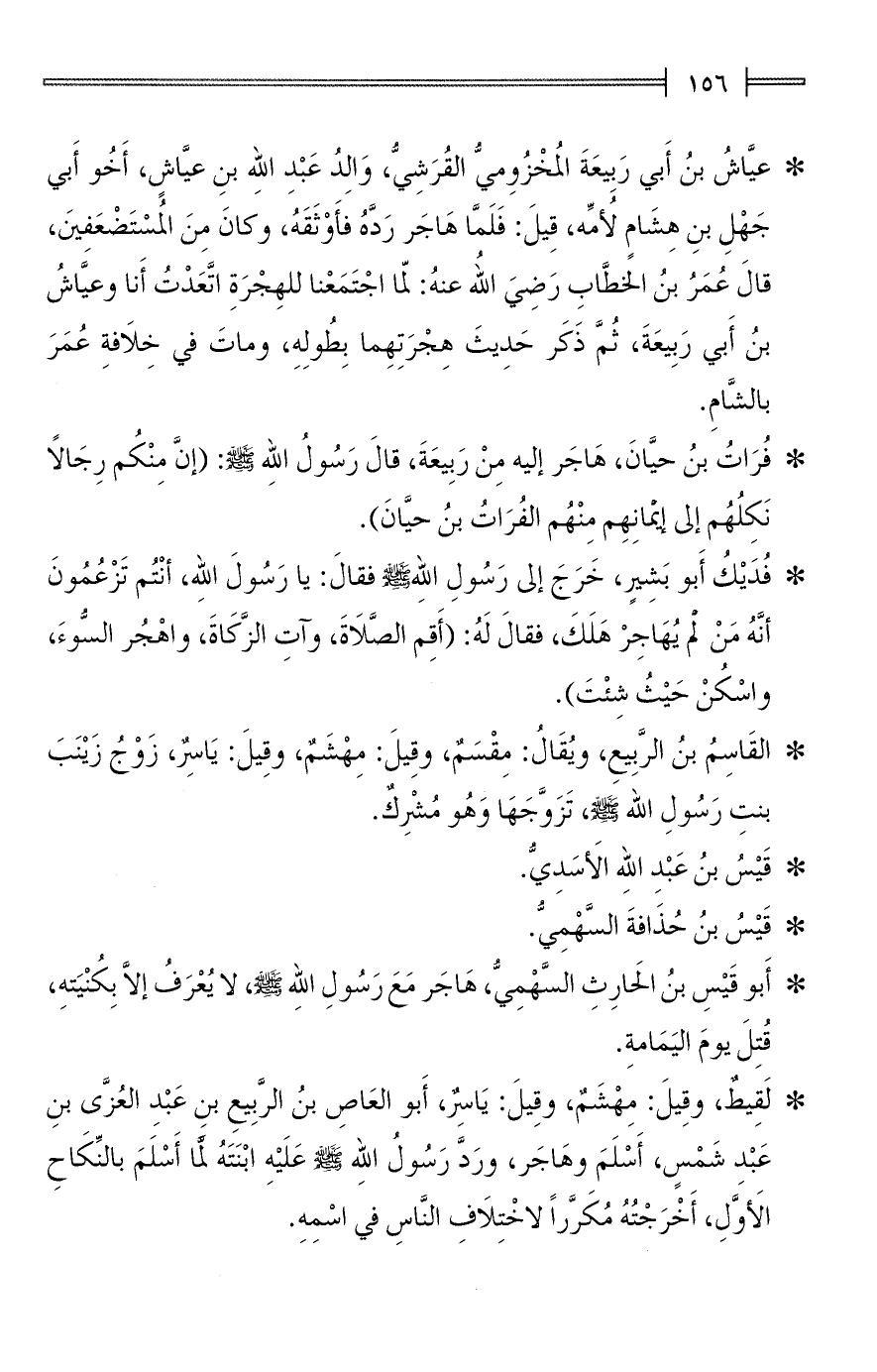 * عيَّاشُ بنُ أَبي رَبِيعَةَ المُخْزُوِميُّ القُرَشِيُّ، وَالِدُ عَبْدِ الله بنِ عيَّاشٍ، أَخُو أَبي جَهْلِ بنِ هِشَامٍ لأُمِّه، قِيلَ: فَلَمَّا هَاجَر رَدَّهُ فأَوْثَقَهُ، وكانَ مِنَ المُسْتَضْعَفِينَ، قالَ عُمَرُ بنُ الخطَّابِ رَضِيَ الله عنهُ: لمّا اجْتَمَعْنا للهِجْرَةِ اتَّعَدْتُ أَنا وعيَّاشُ بنُ أَبي رَبِيعَةَ، ثُمَّ ذَكَر حَدِيثَ هِجْرَتِهِما بِطُولِهِ، وماتَ في خِلَافةِ عُمَرَ بالشَّامِ.