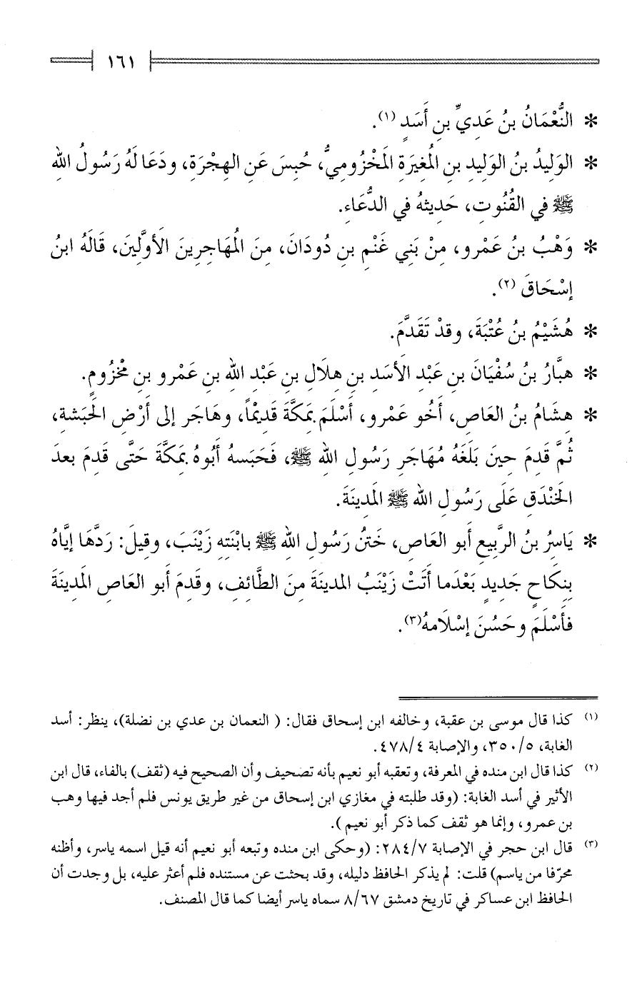 (¬1) كذا قال موسى بن عقبة، وخالفه ابن إسحاق فقال: (النعمان بن عدي بن نضلة)، ينظر: أسد الغابة، 5/ 350، والإصابة 4/ 478.