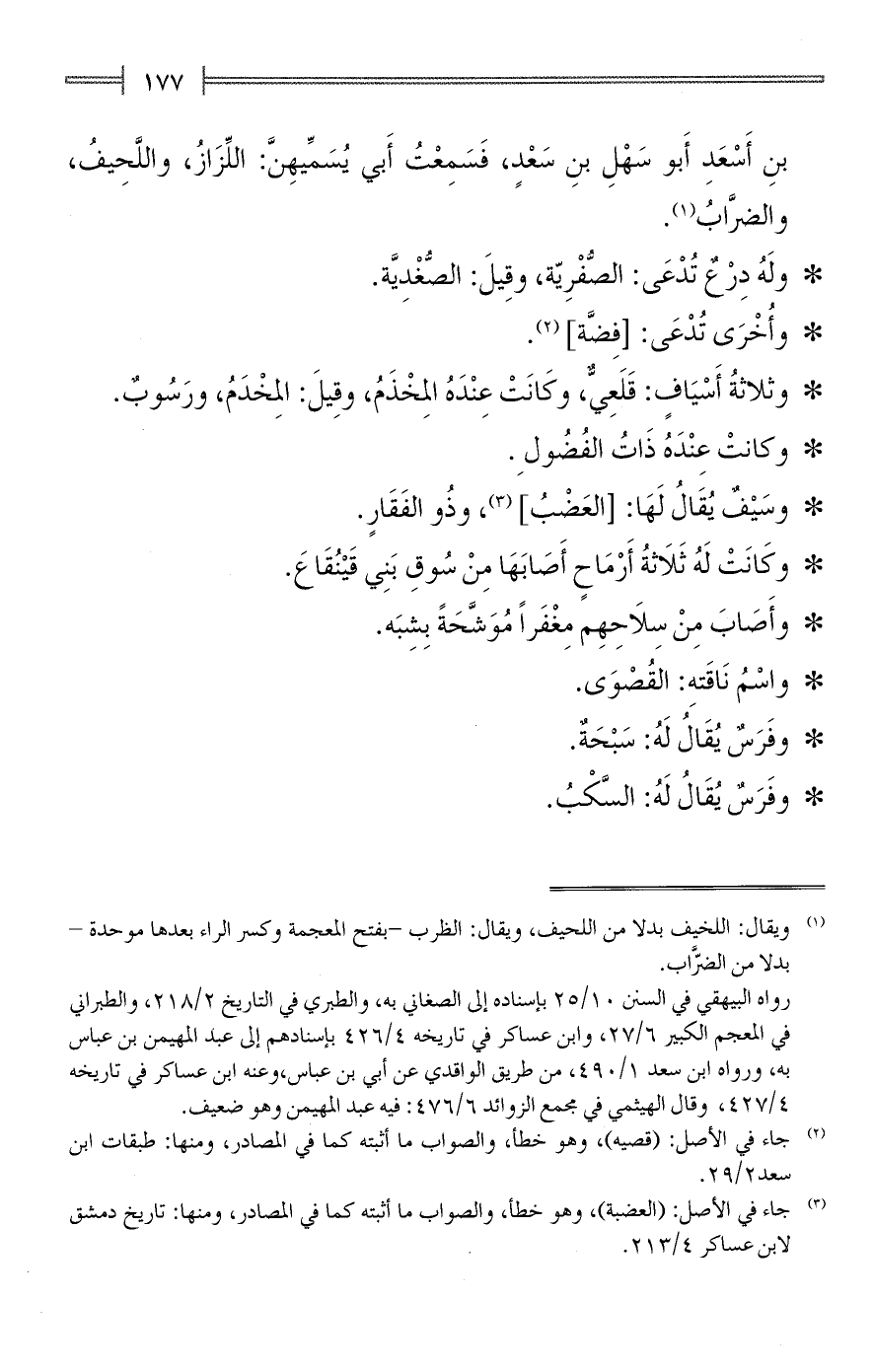 * ولَهُ دِرْعٌ تُدْعَى: الصُّفْرِيّة، وقِيلَ: الصُّغْدِيَّة.