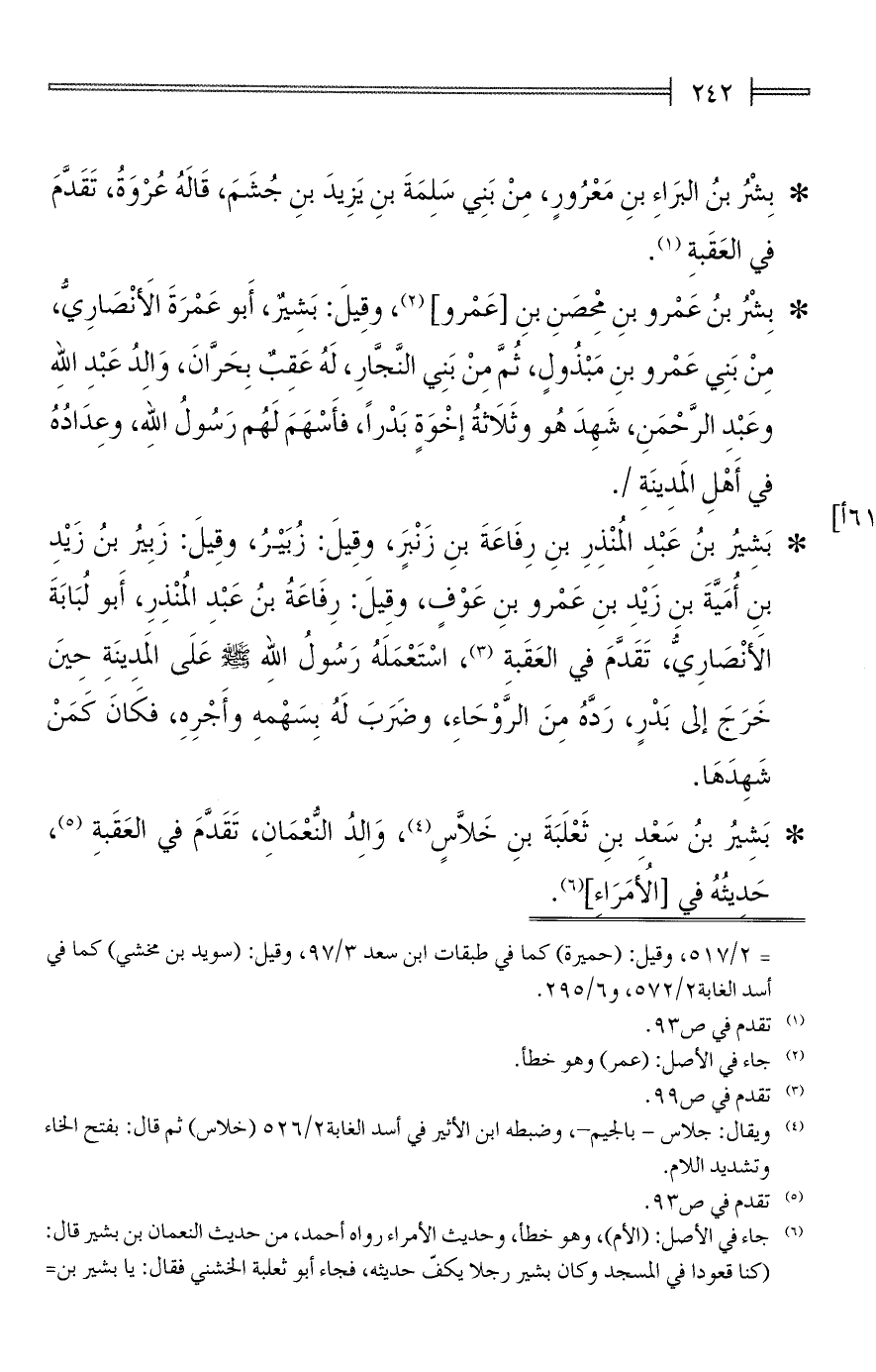 * بِشْرُ بنُ البَراءِ بنِ مَعْرُورٍ، مِنْ بَنِي سَلِمَةَ بنِ يَزِيدَ بنِ جُشَمَ، قَالَهُ عُرْوَةُ، تَقَدَّمَ في العَقَبةِ (¬1).