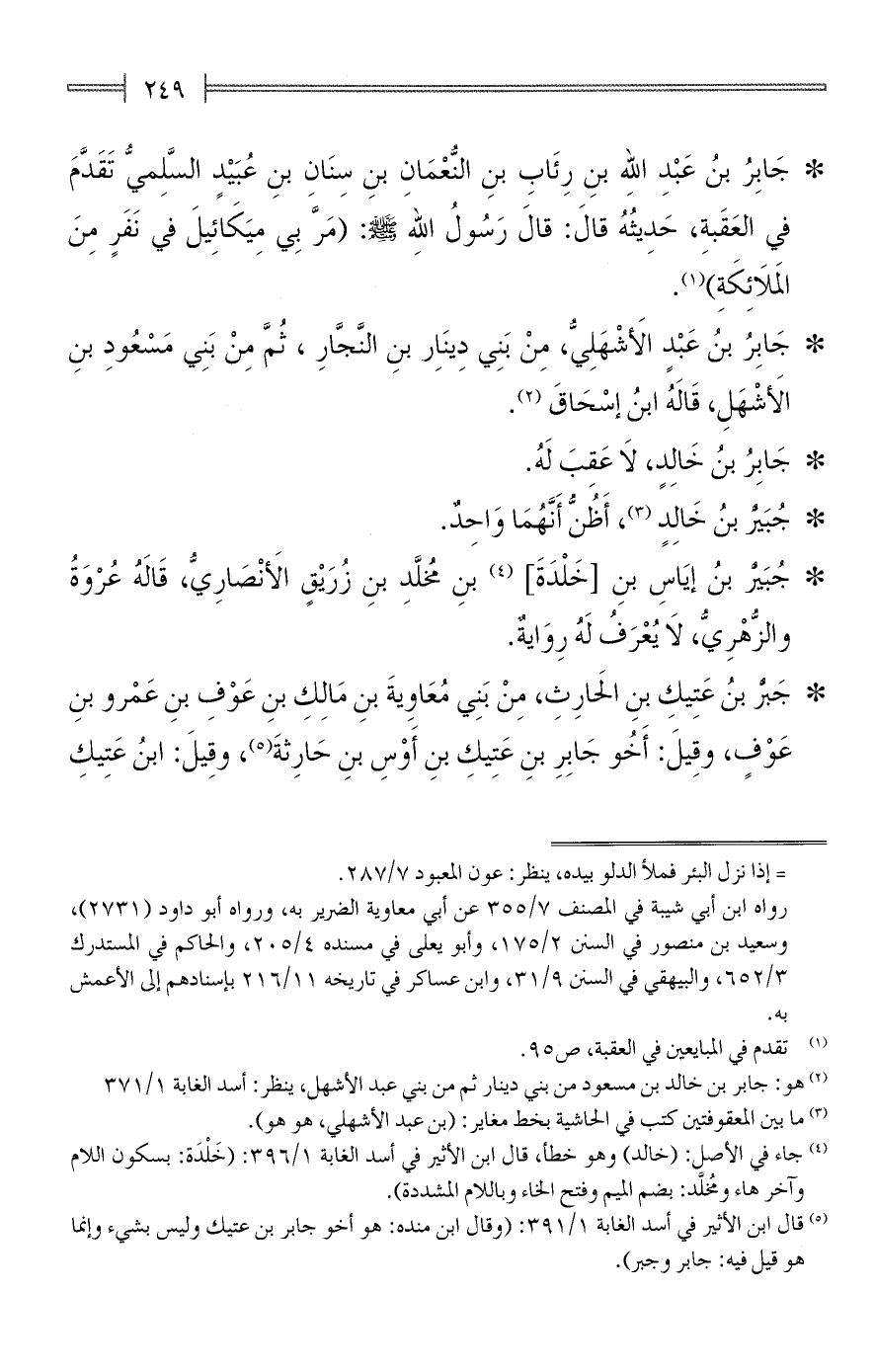 (¬5) قال ابن الأثير في أسد الغابة 1/ 391: (وقال ابن منده: هو أخو جابر بن عتيك وليس بشيء وإنما هو قيل فيه: جابر وجبر).