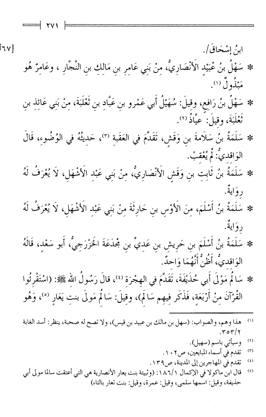 (¬5) قال ابن ماكولا في الإكمال 1/ 186: (وثبيتة بنص يعار الأنصارية هي التي أعتقت سالما مولى أبى حذيفة، وقيل: اسمها سلمى، وقيل: عمرة، وقيل: بنت تعار بالتاء)