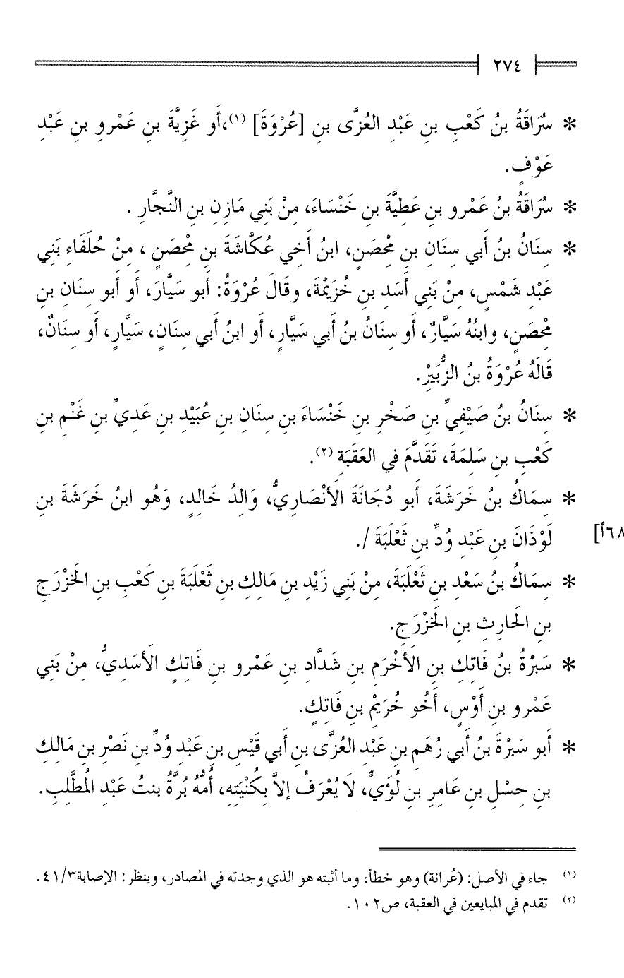(¬1) جاء في الأصل: (عُرانة) وهو خطأ، وما أثبته هو الذي وجدته في المصادر، وينظر: الإصابة 3/ 41.