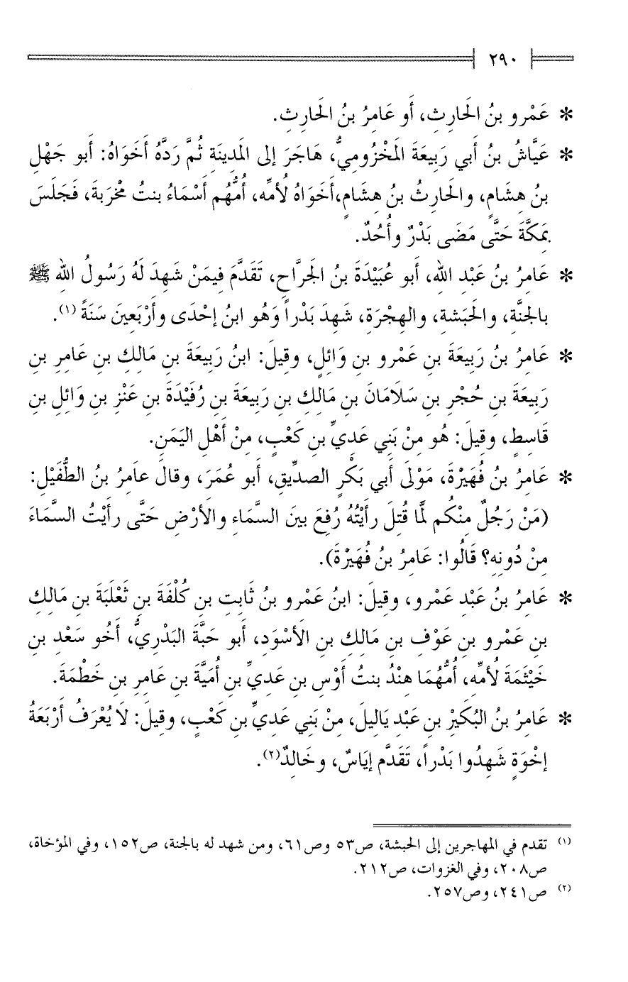 (¬1) تقدم في المهاجرين إلى الحبشة، ص 53 وص 61، ومن شهد له بالجنة، ص 152، وفي المؤاخاة، ص 208، وفي الغزوات، ص 212.