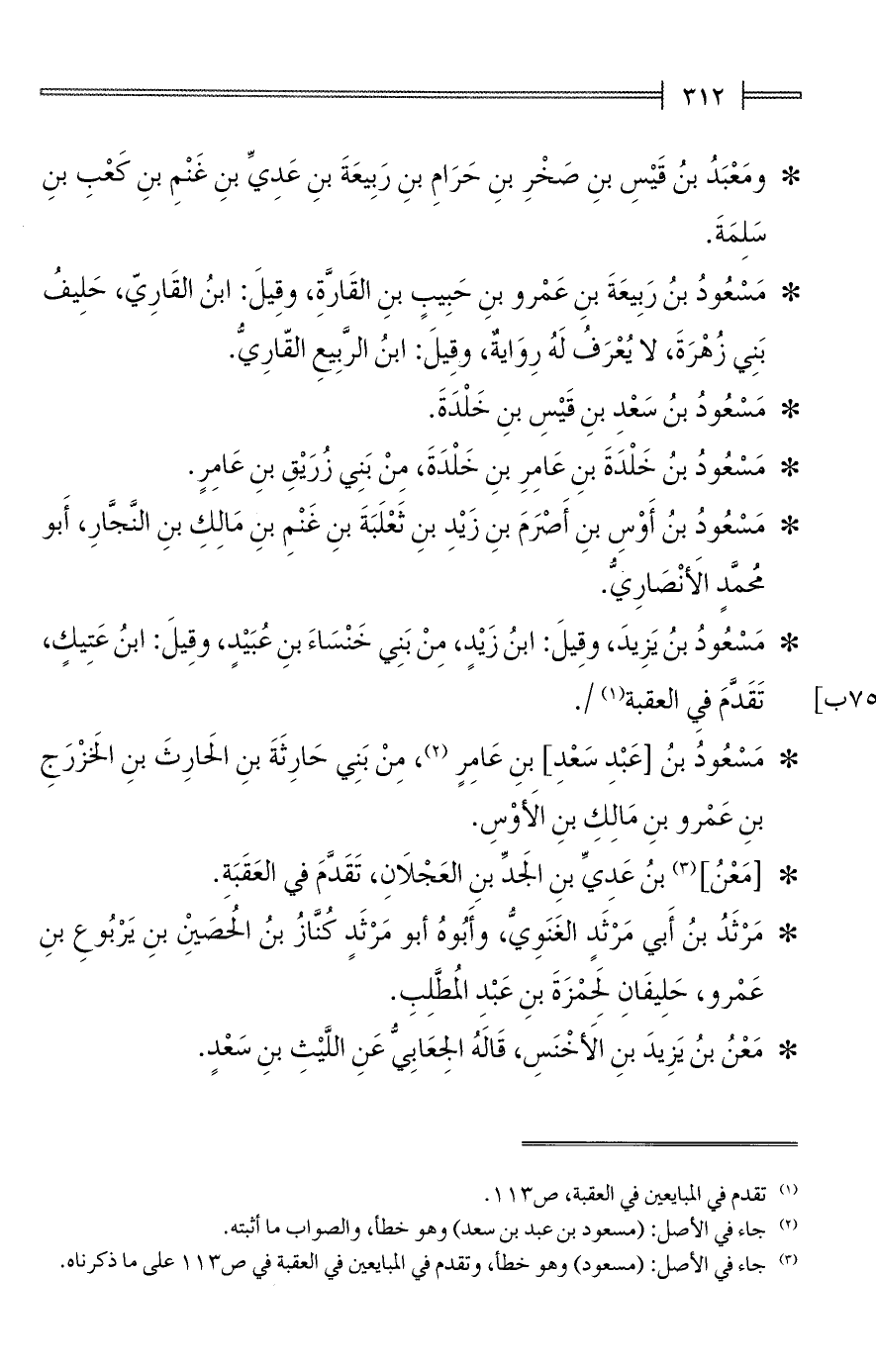(¬3) جاء في الأصل: (مسعود) وهو خطأ، وتقدم في المبايعين في العقبة في ص 113 على ما ذكرناه.
